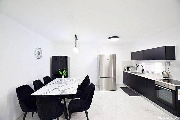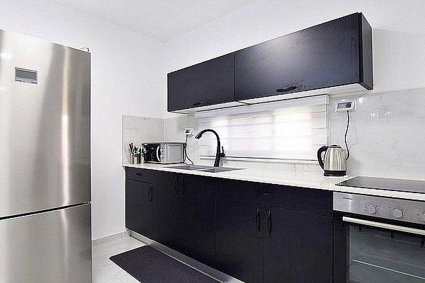 מטבחון מאובזר: כיריים אינדוקציה, תנור בילד אין, קומקום חשמלי, מתקן מים שומר שבת.