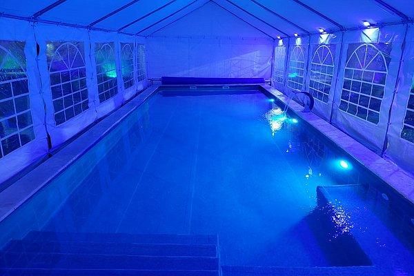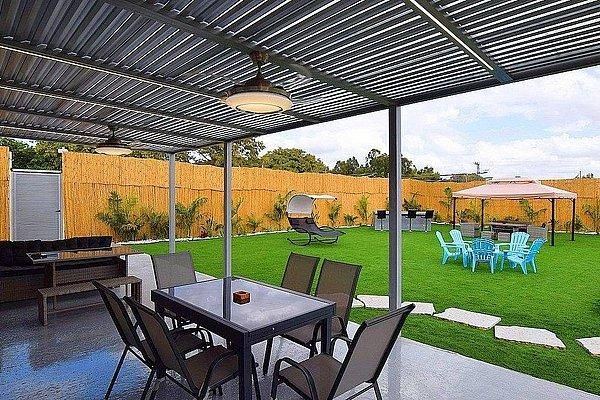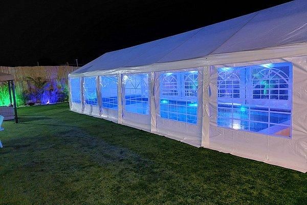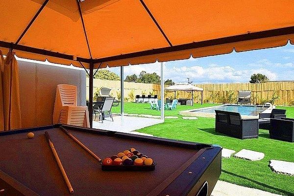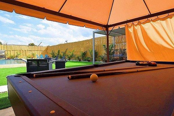 שולחן סנוקר תחת פרגולה גדולה