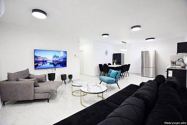סלון יוקרתי עם מסך Smart TV 65 אינץ', נטפליקס ואינטרנט אלחוטי