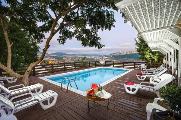 בריכת שחייה מחוממת ומקורה מול נוף פנורמי