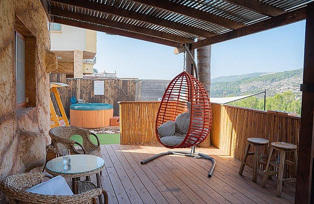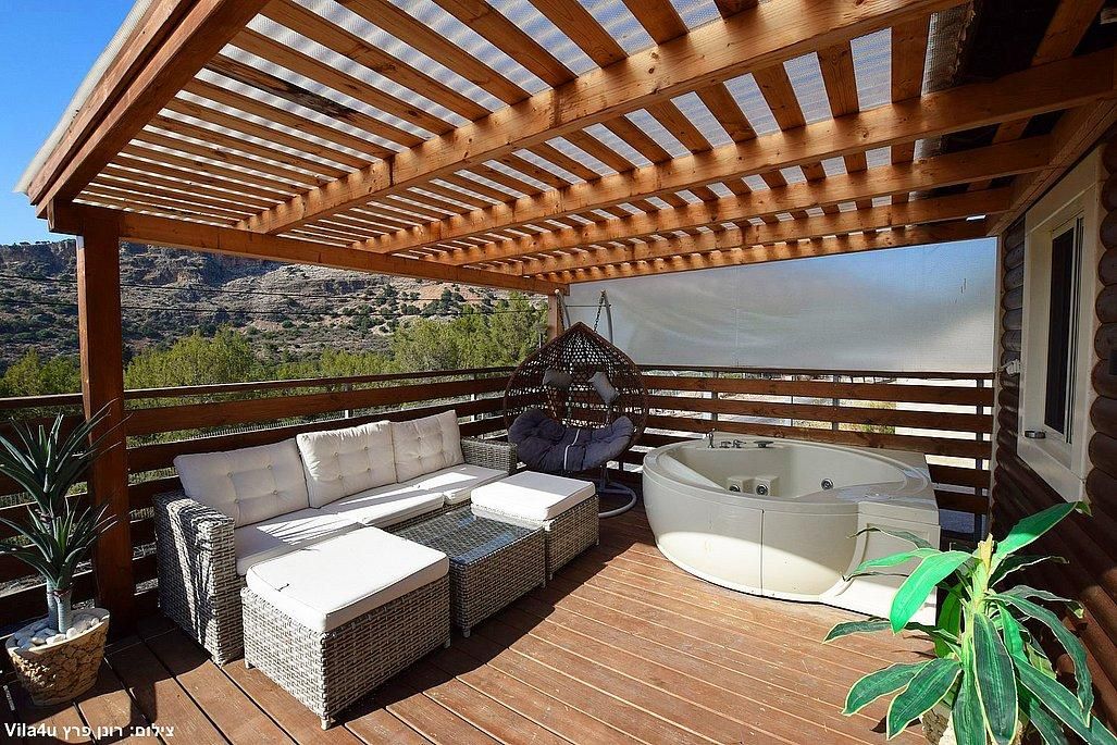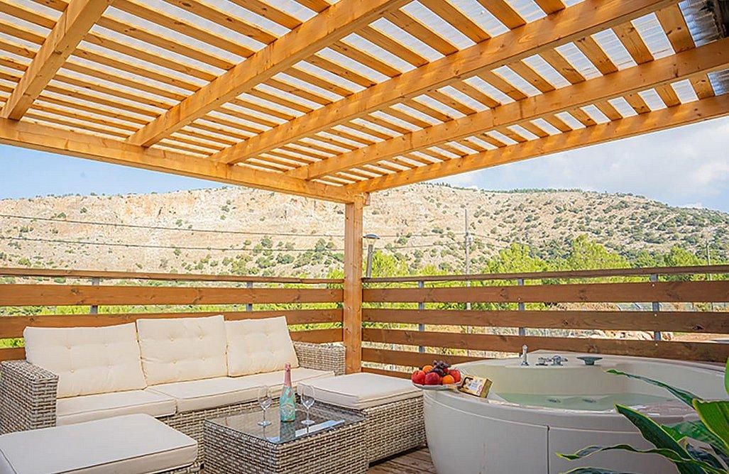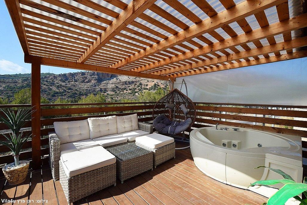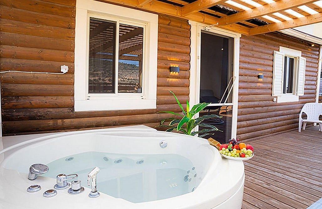 - מרפסת חיצונית עם שולחן, כיסאות וג'קוזי ספא פרטי