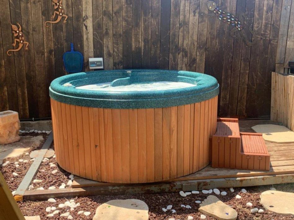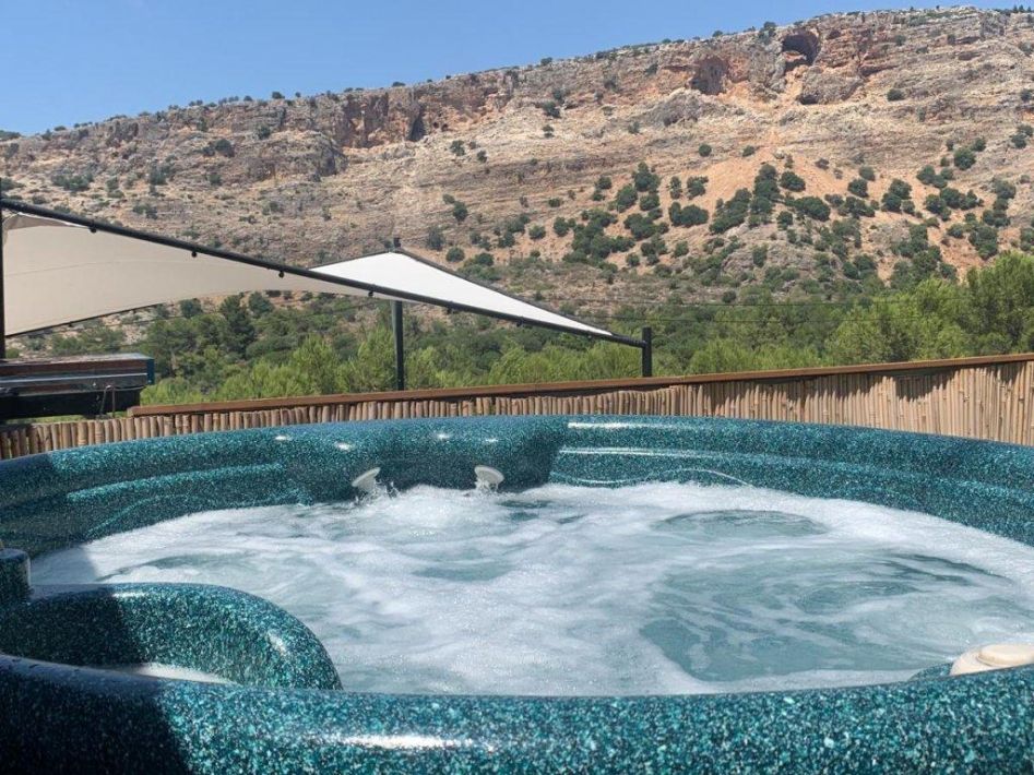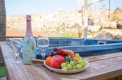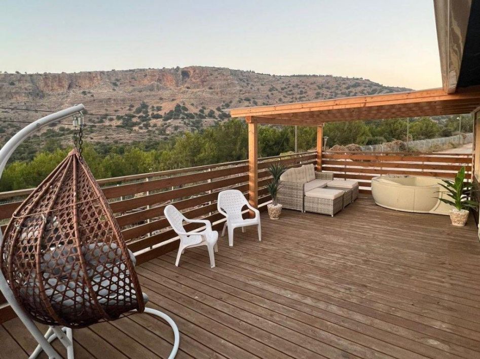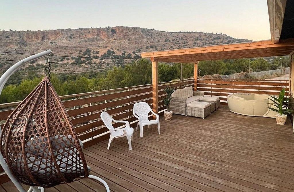 - מרפסת חיצונית עם שולחן, כיסאות וג'קוזי ספא פרטי