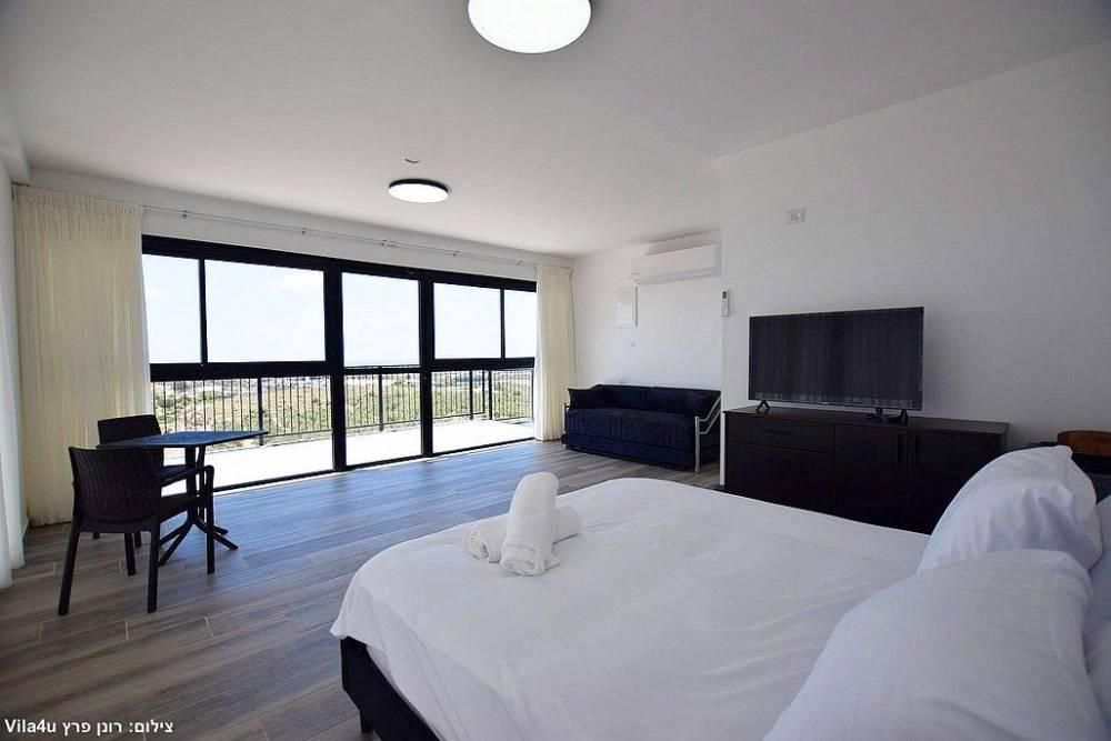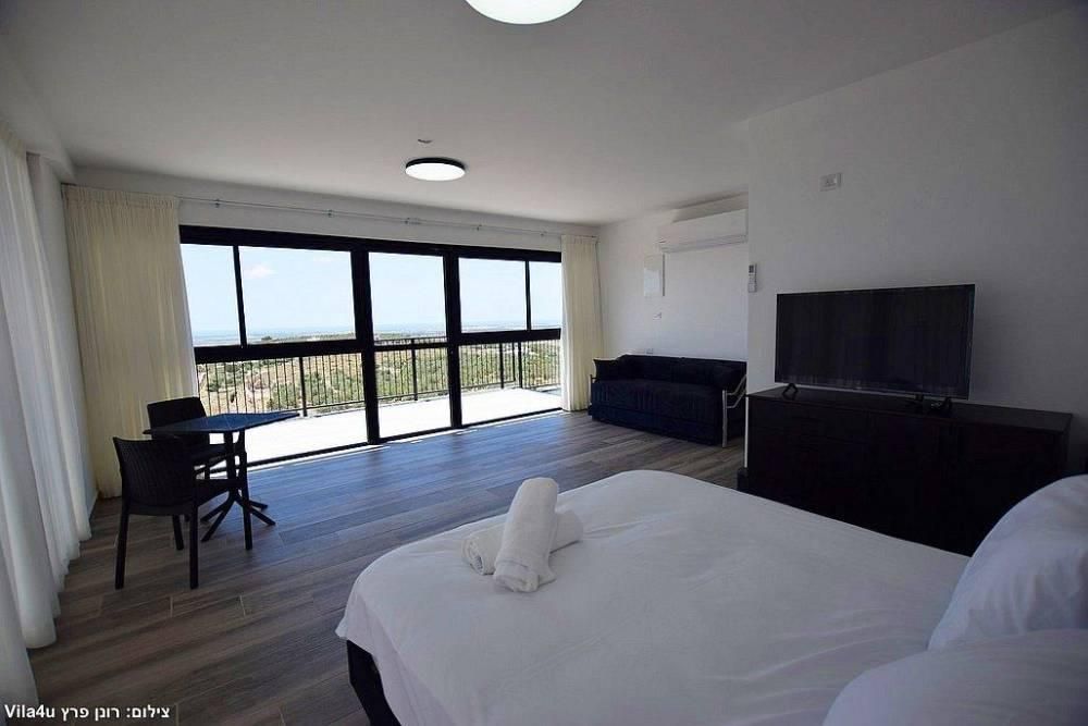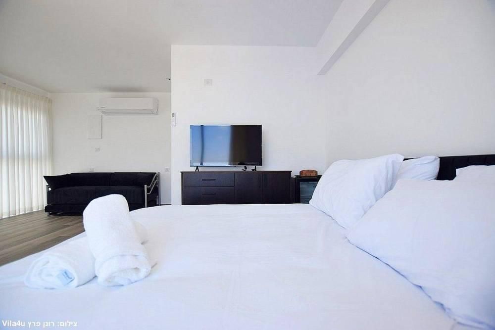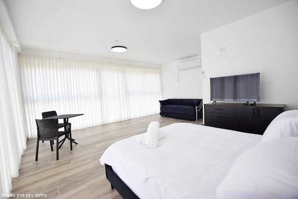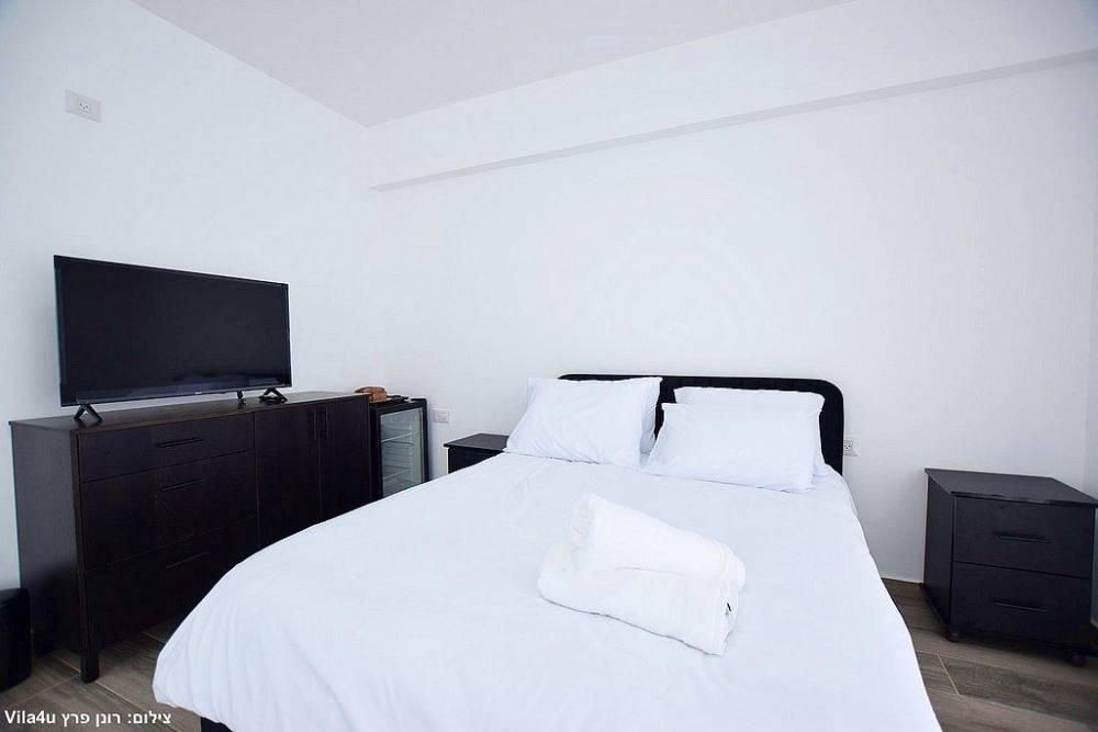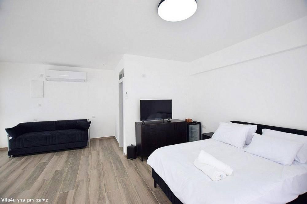 חדר שינה מיטה זוגית, טלוויזיה, ספה נפתחת, מיזוג אויר ושידה