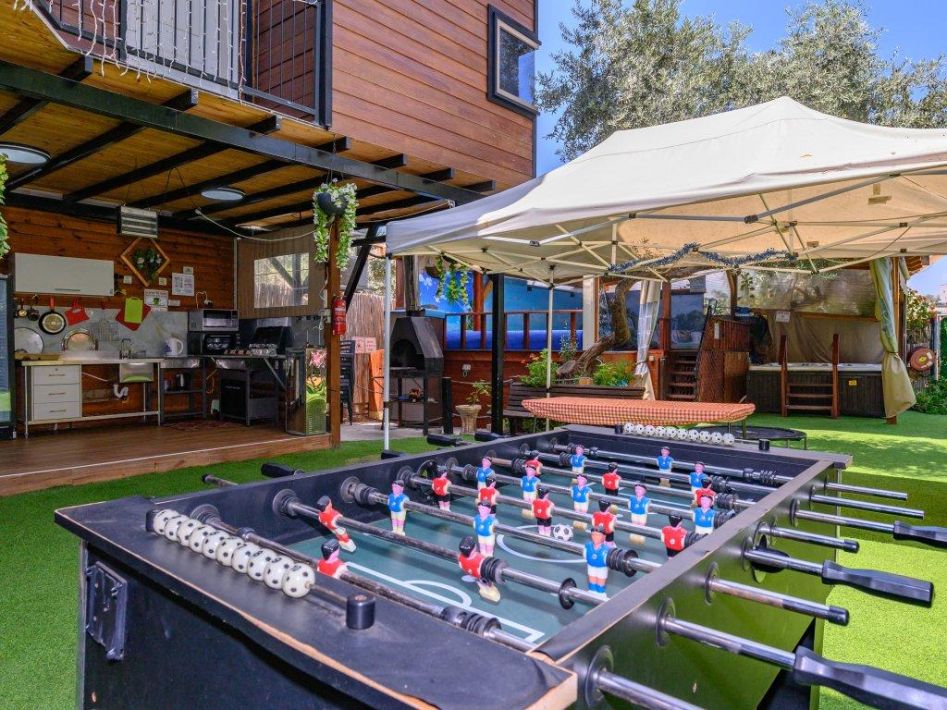 פינת מנגל מקצועית עם מטבח מאובזר- מקרר גדול, כיור ומיקרוגל