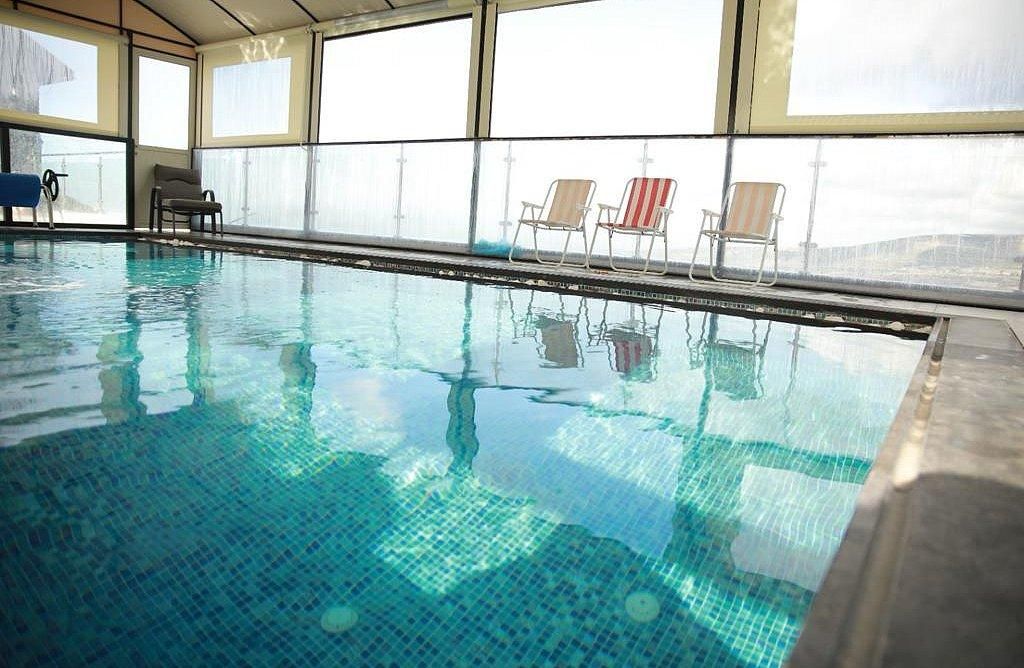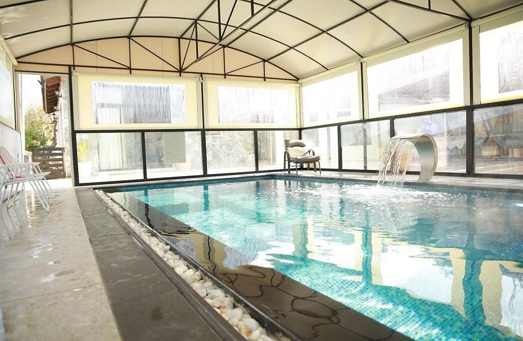 בריכת שחייה מחוממת ומגודרת (עם נעילה) בגודל 7 על 3.5 מטר