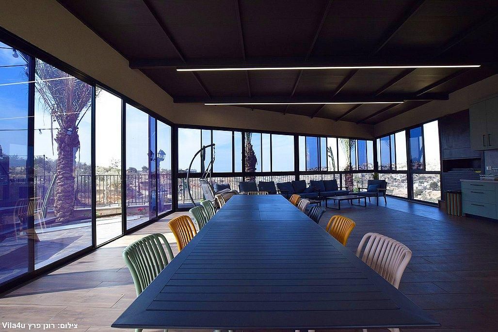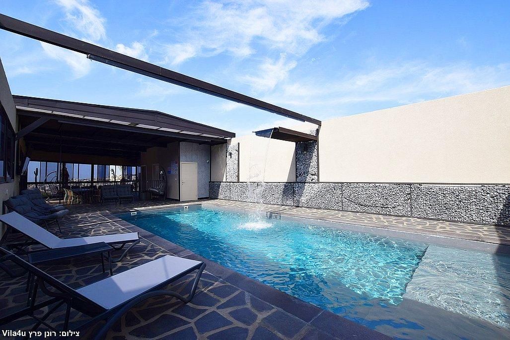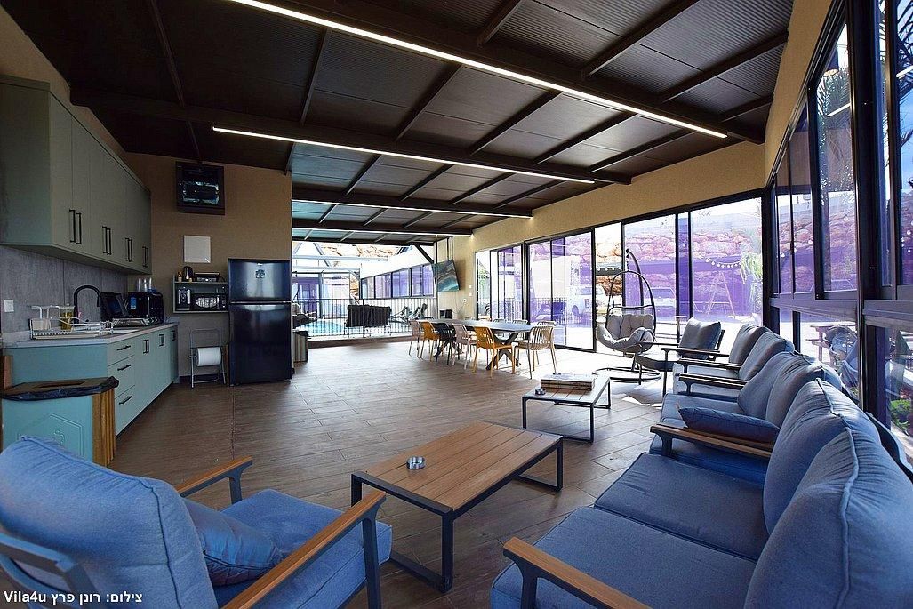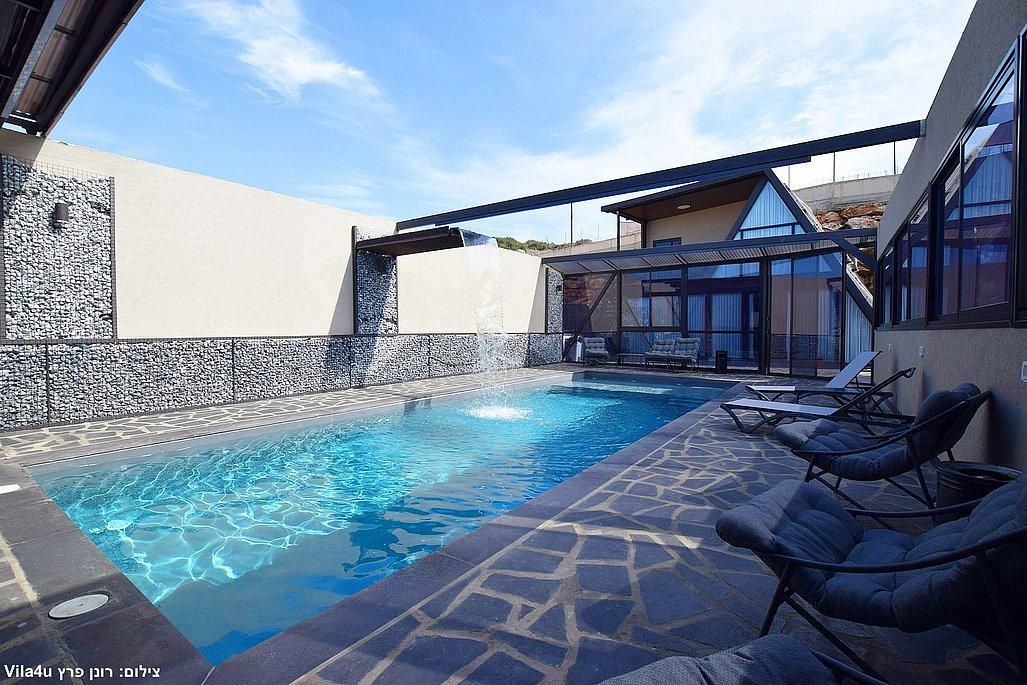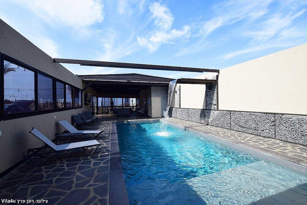 בחצר המטופחת תגלו בריכת שחייה מחוממת ומקורה בעונת החורף, עם מפל מים קסום, פינות ישיבה מוצלות ושיזוף, פינת ברביקיו מאובזרת ומטבח חוץ.
