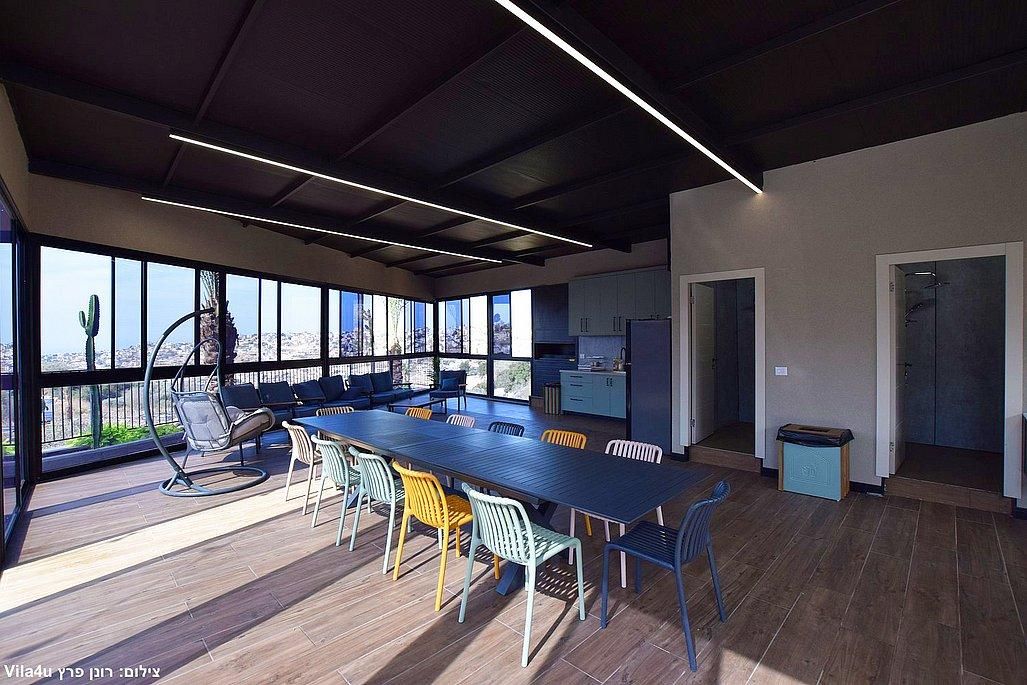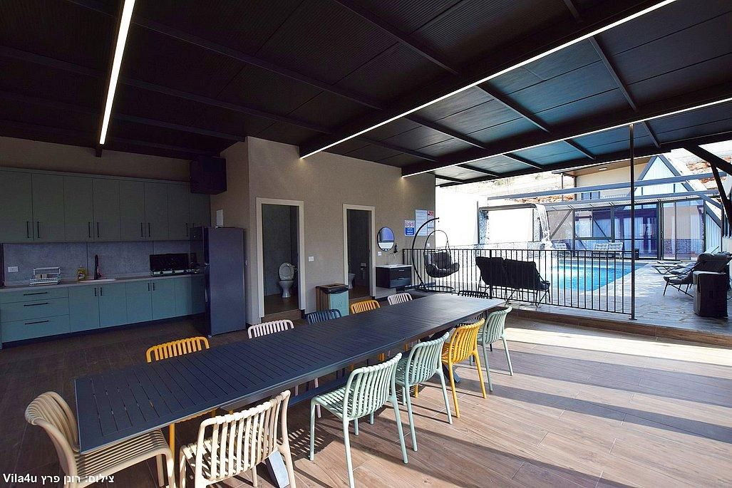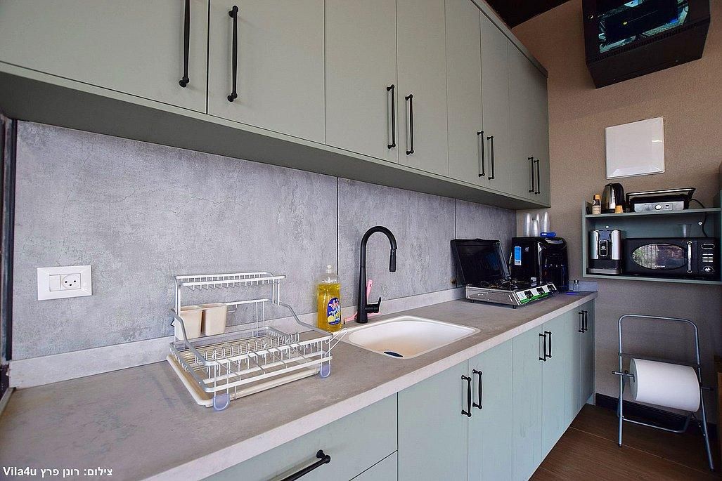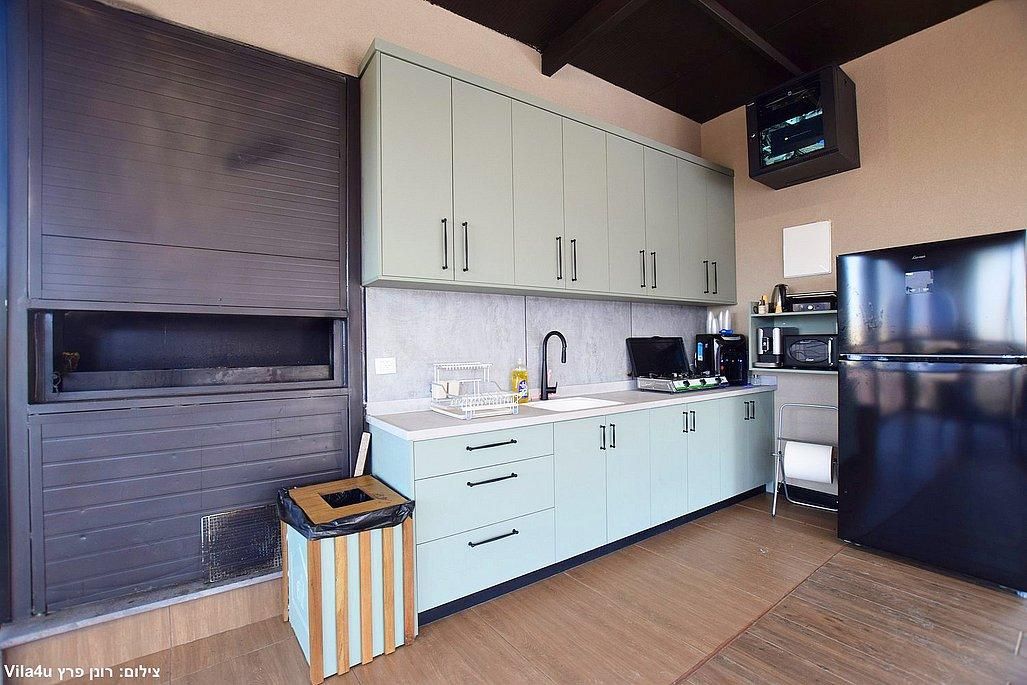 - - מטבח חוץ מלא ציוד - כולל בר מים, כיריים גז, טוסטר, מקרר גדול עם מקפיא, קומקום ומיקרוגל