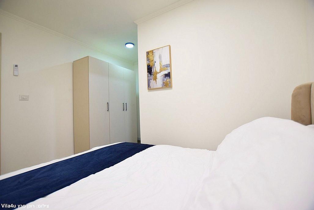 - - חדר שינה זוגי עם מיטה אורטופדית, ארון ושידות