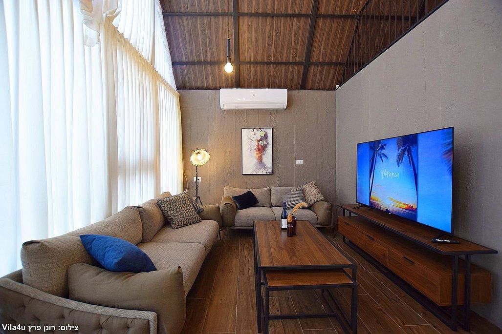 - - סלון מפנק עם מערכת ישיבה וטלוויזיה חכמה