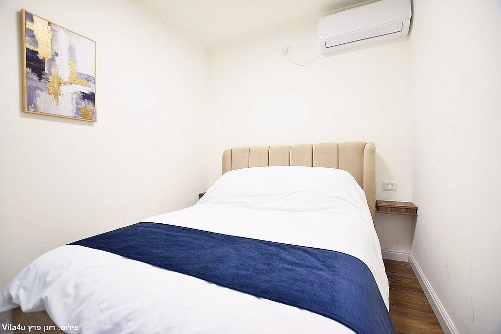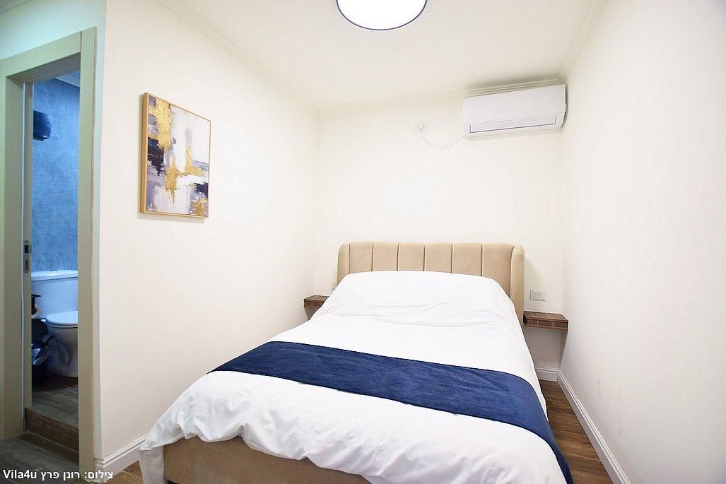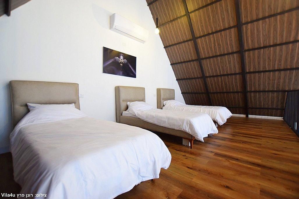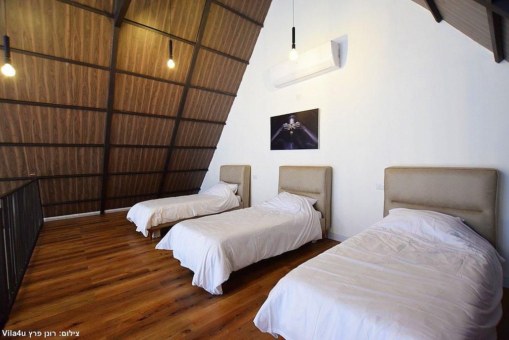 - - חדר שינה נוסף לילדים בקומה העליונה עם 3 מיטות יחיד ומיזוג אוויר