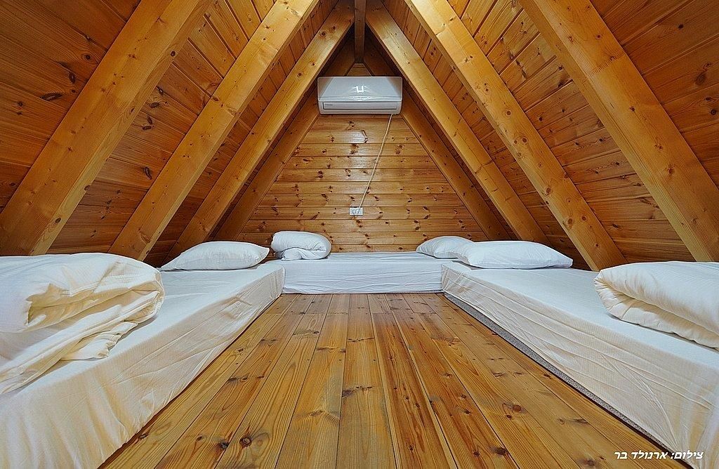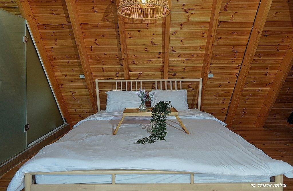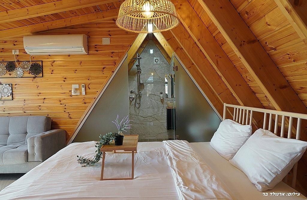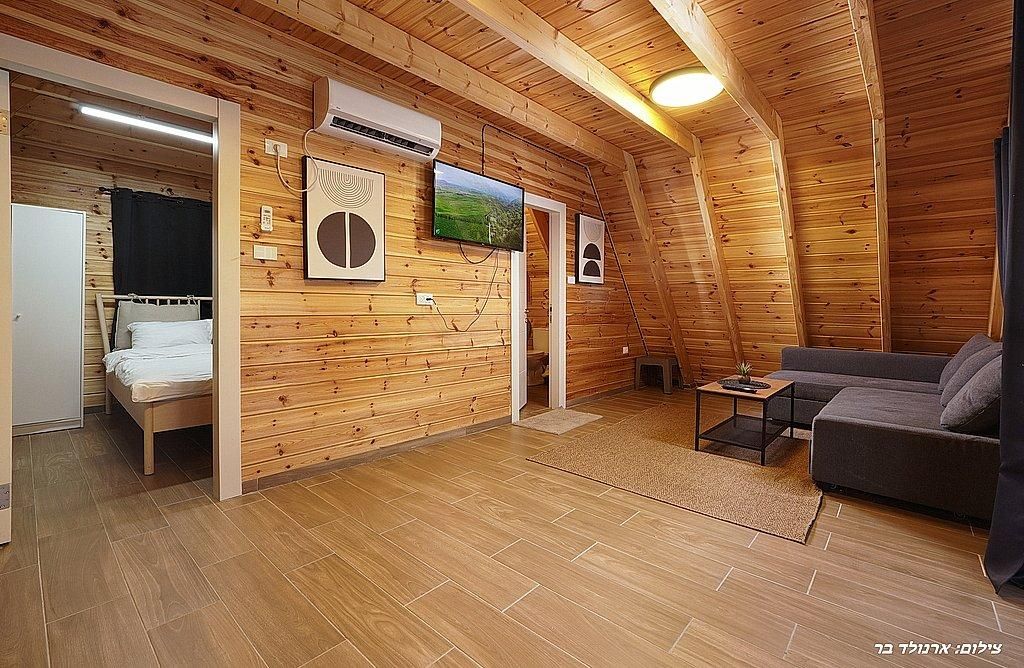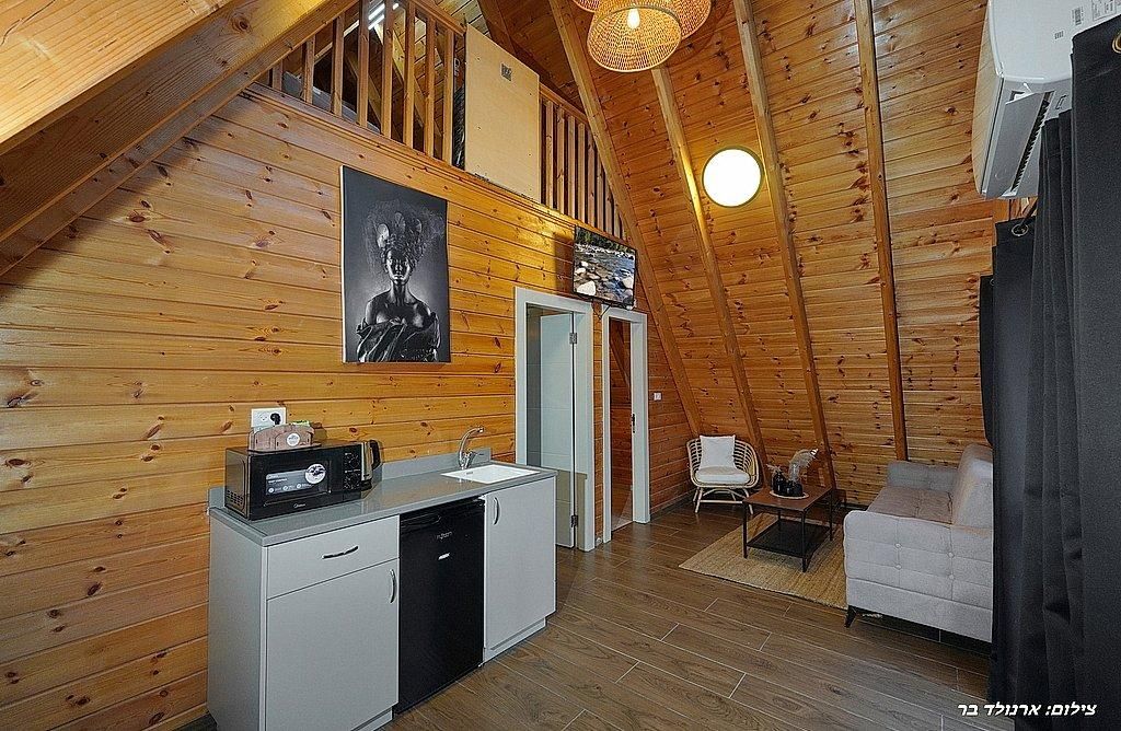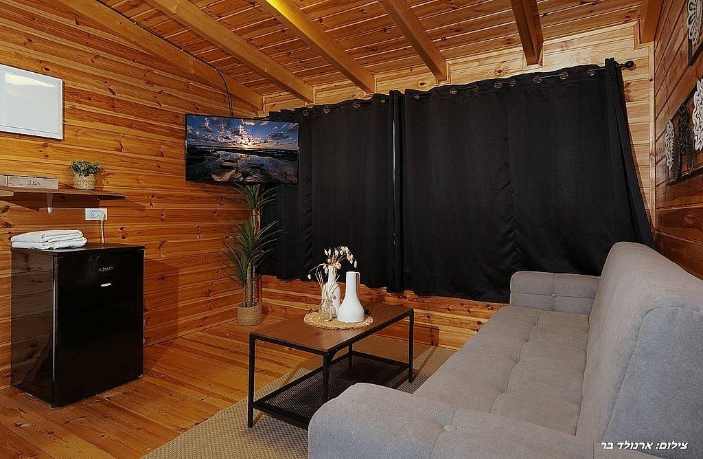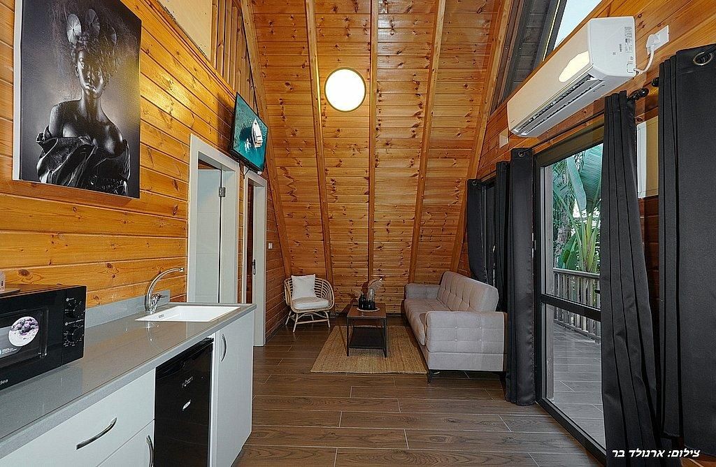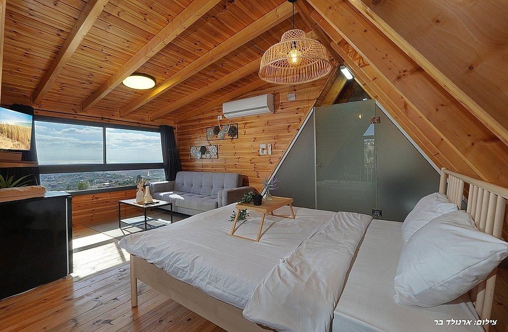מיטה זוגית מוצעת, מערכת מיזוג אוויר, מסך טלוויזיה, פינת ישיבה נוחה, מטבחון אטרקטיבי עם קומת גלריה ייחודית ומזרנים