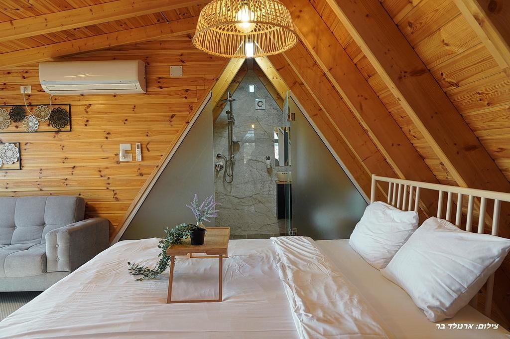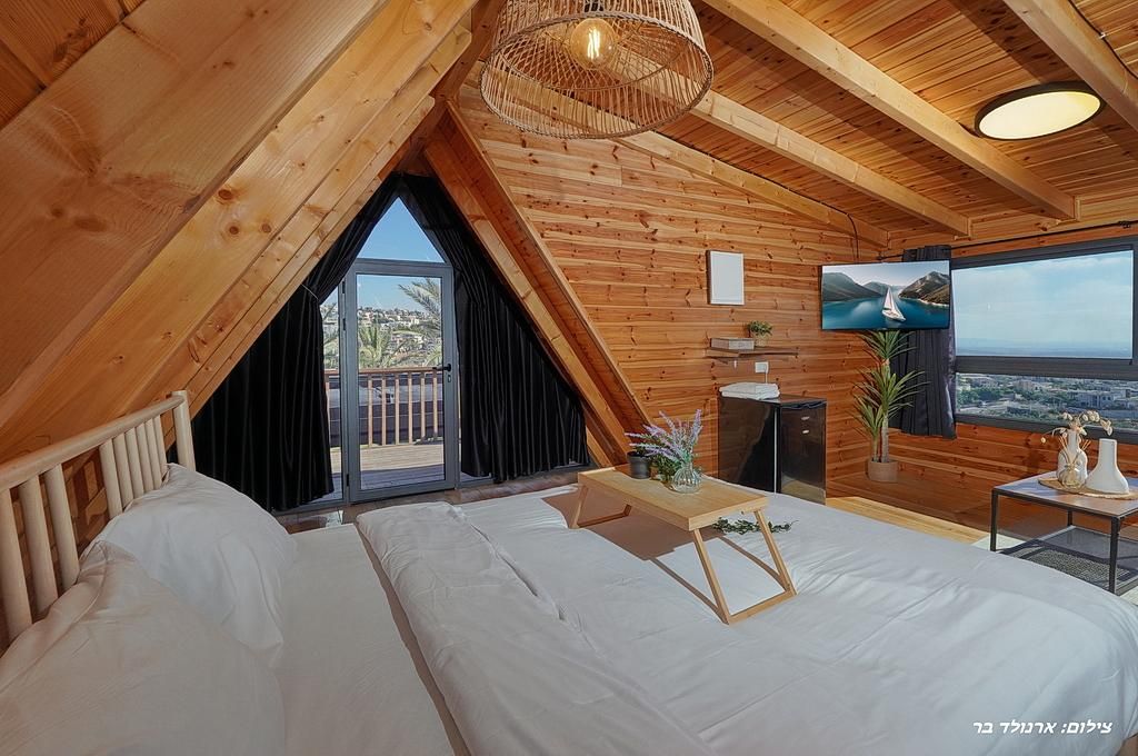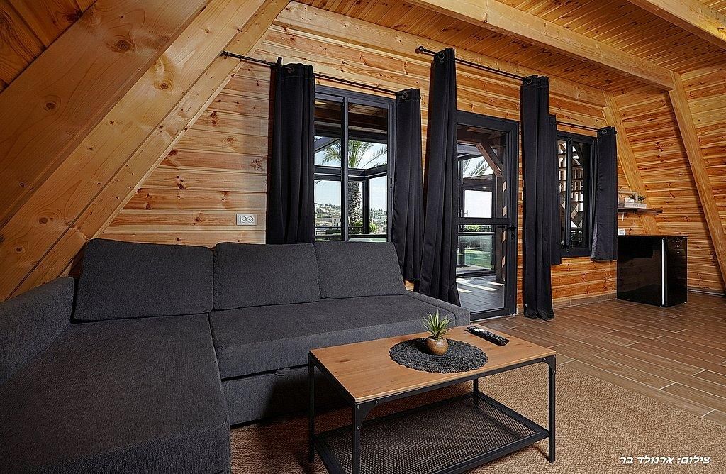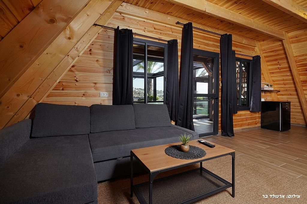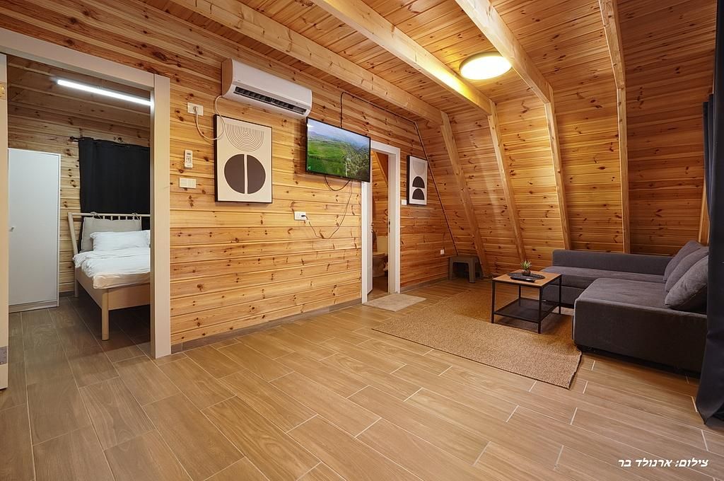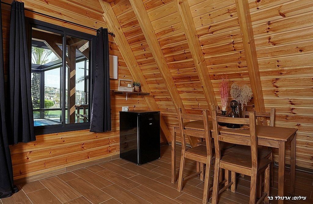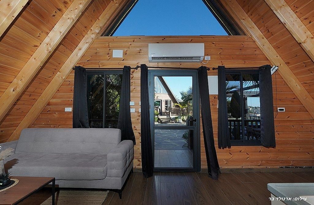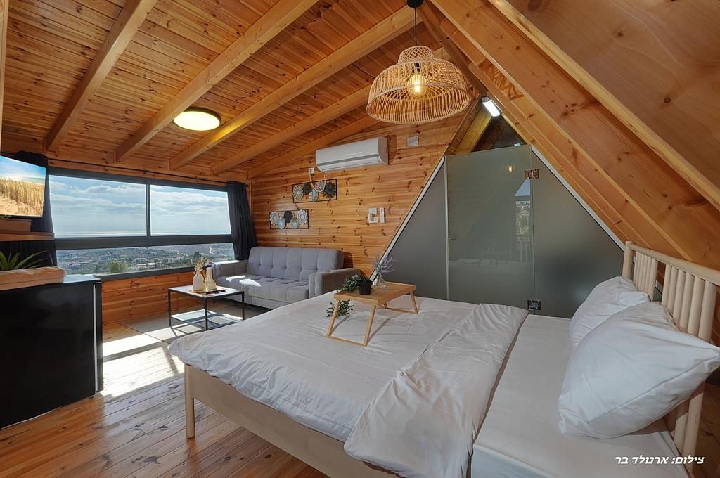 מיטה זוגית מוצעת, מערכת מיזוג אוויר, מסך טלוויזיה, פינת ישיבה נוחה, מטבחון אטרקטיבי עם קומת גלריה ייחודית ומזרנים