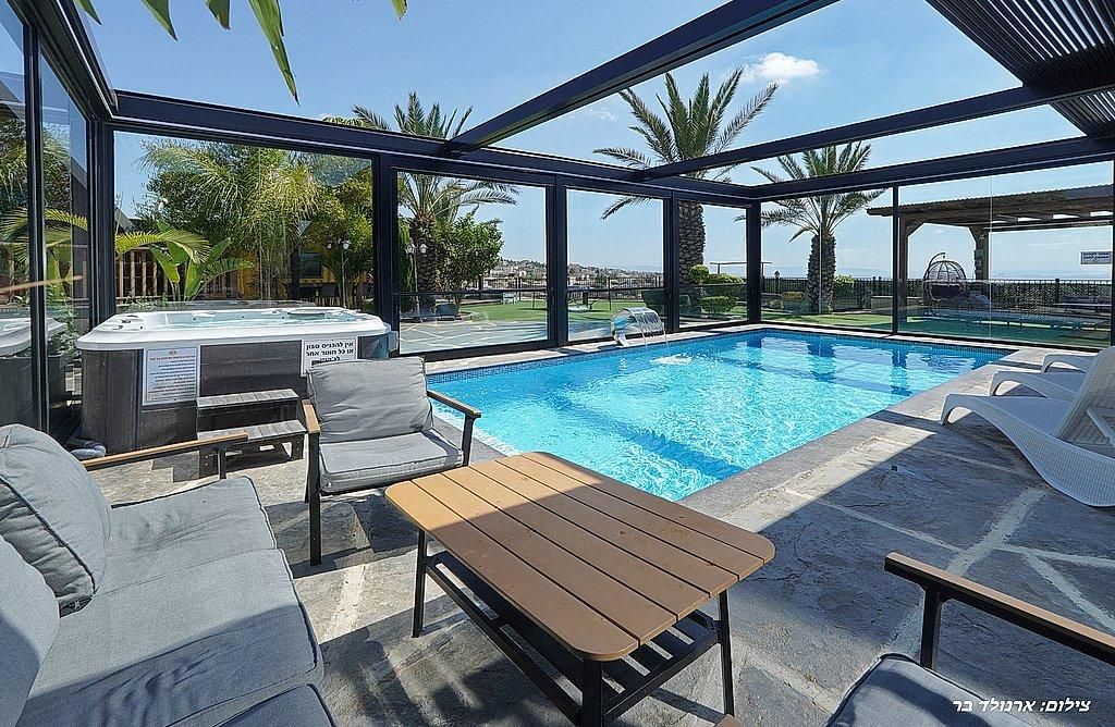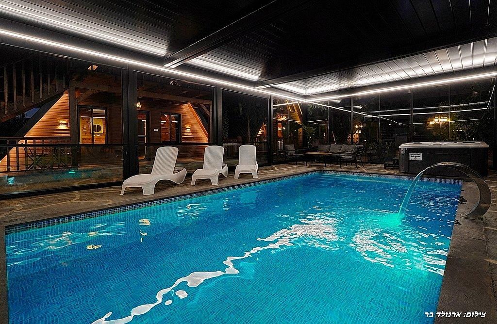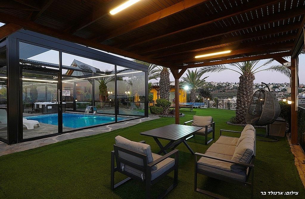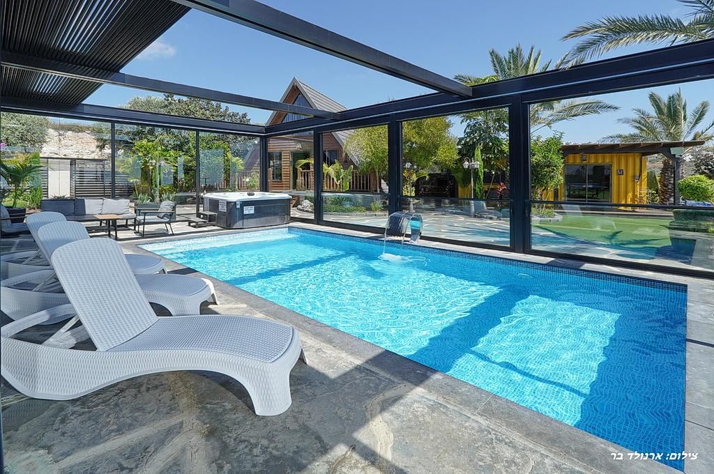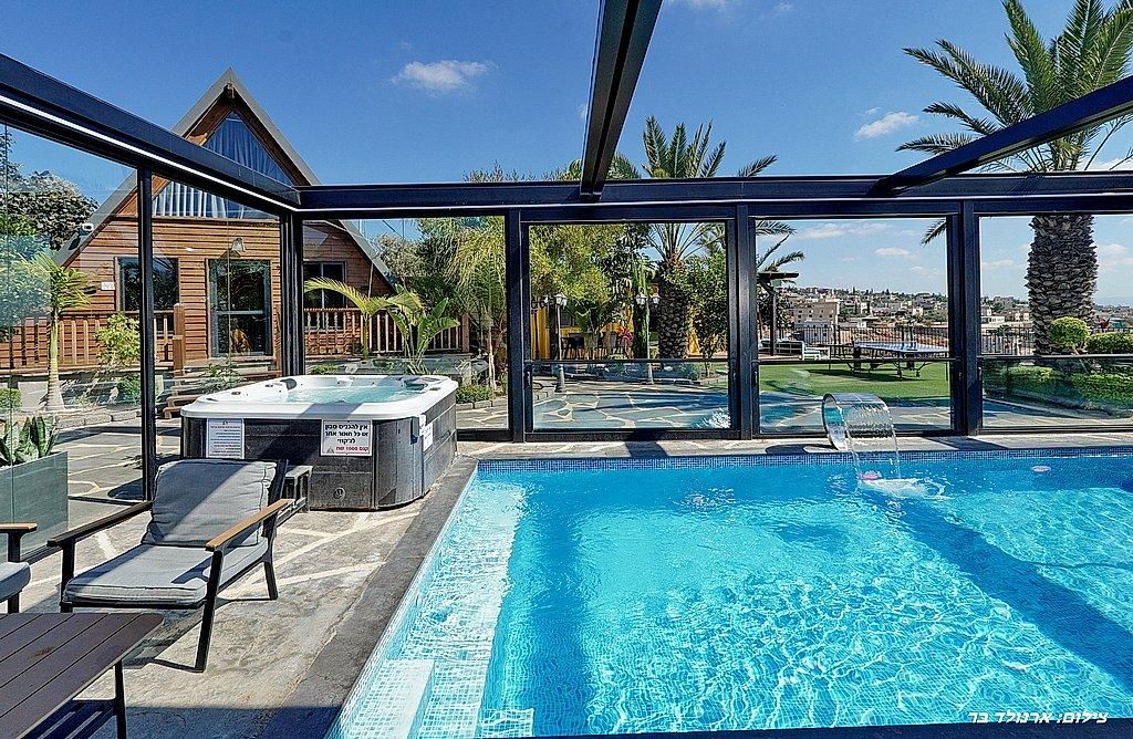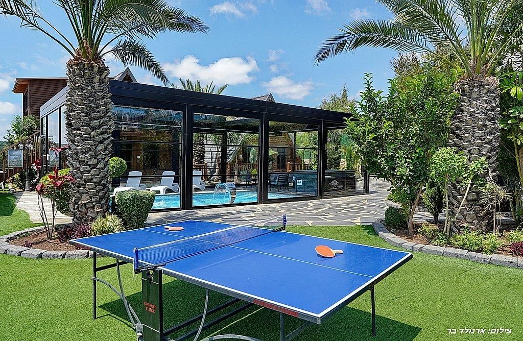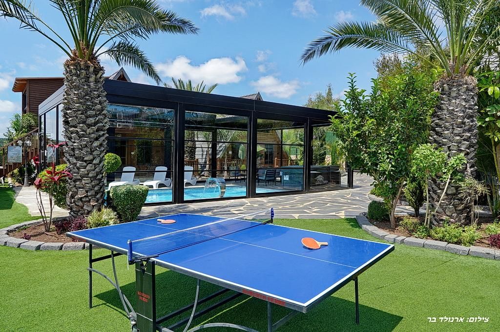 במתחם החיצוני תיהנו מאטרקציות מהנות כמו: בריכה מחוממת, שולחן פינג פונג כייפי וכמובן גם טרמפולינה לילדים.