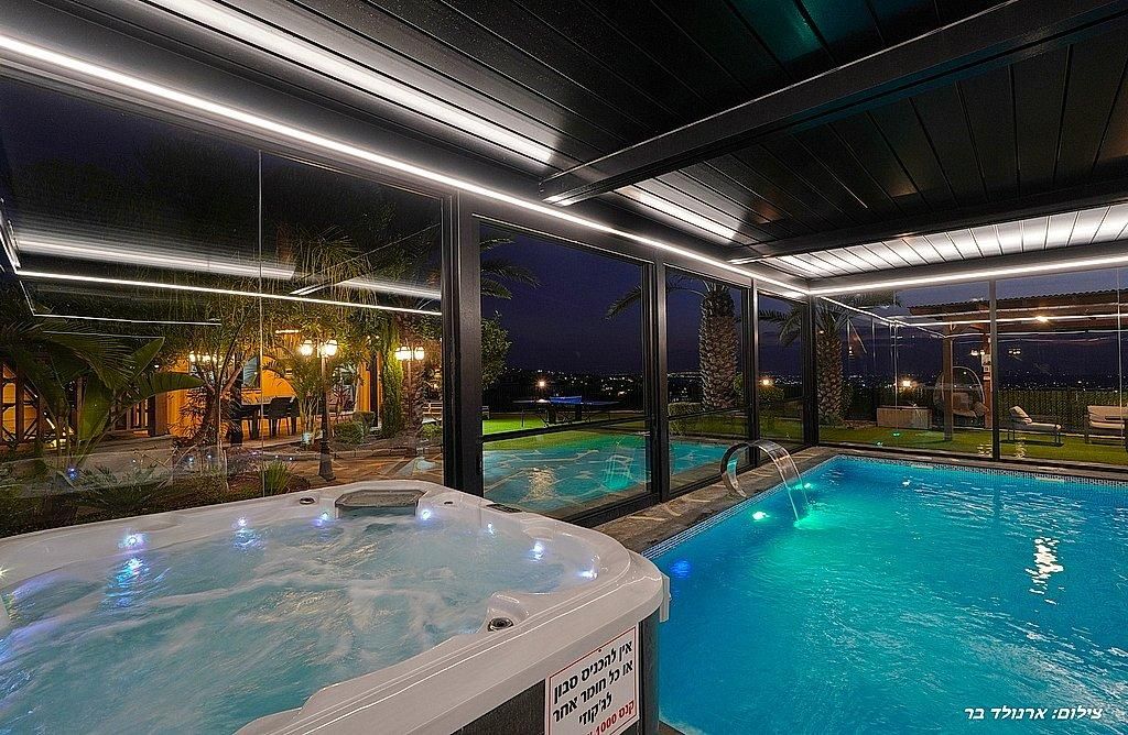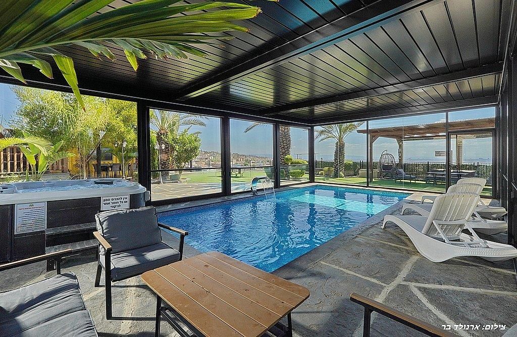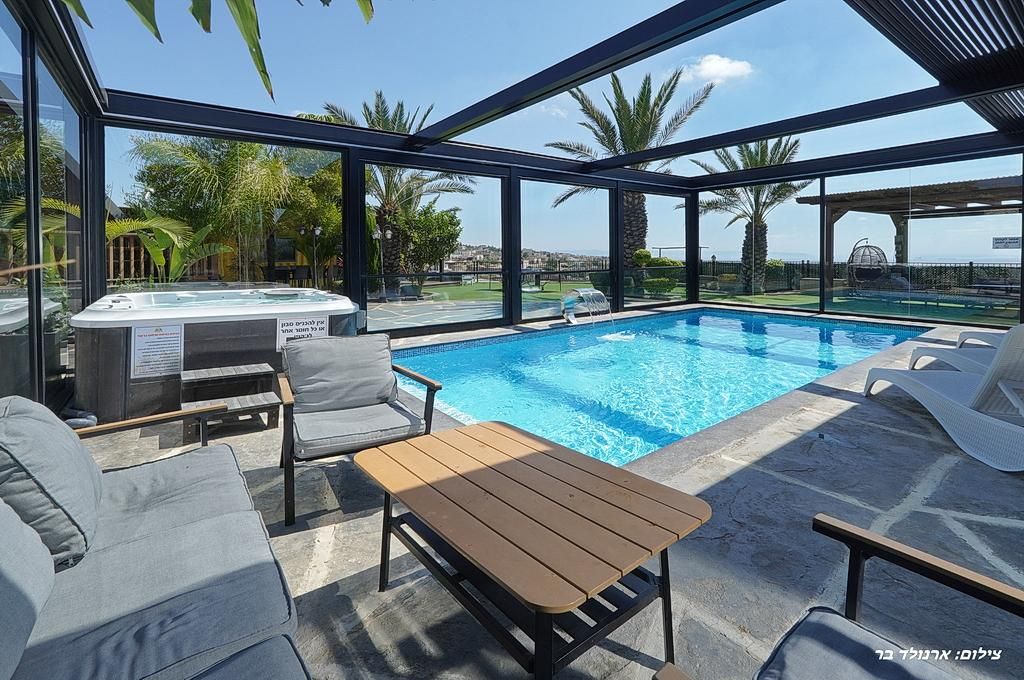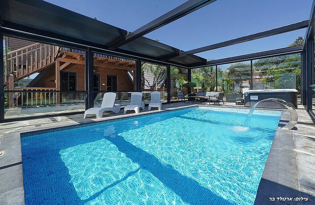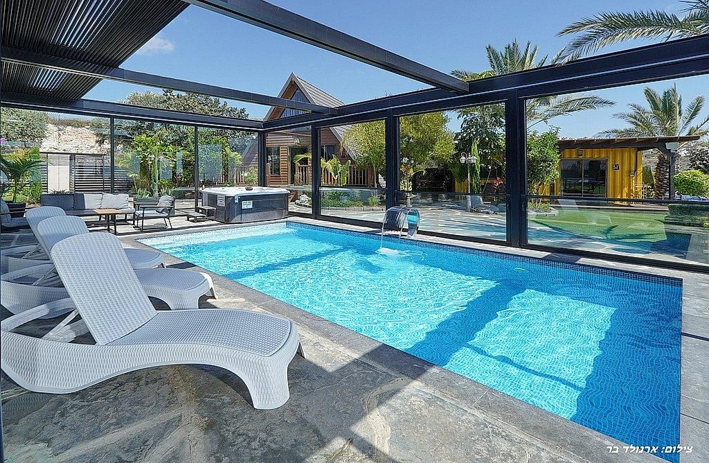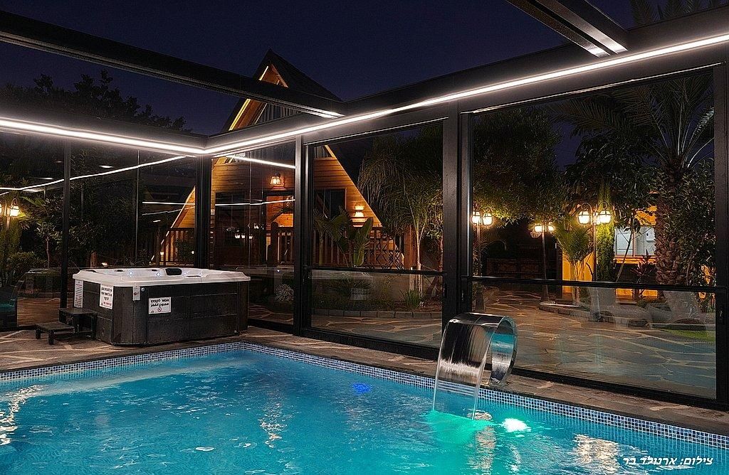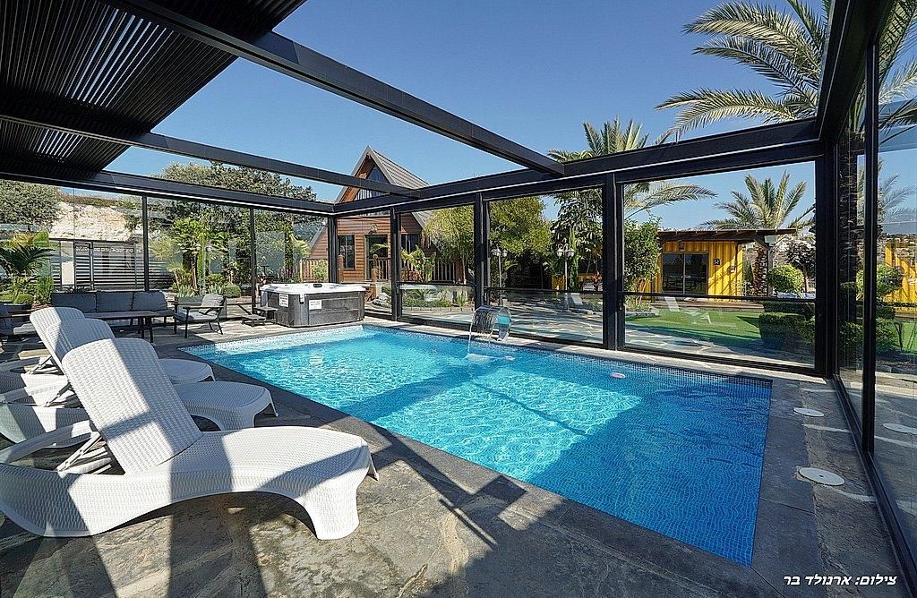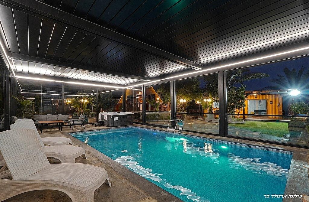 במתחם החיצוני תיהנו מאטרקציות מהנות כמו: בריכה מחוממת, שולחן פינג פונג כייפי וכמובן גם טרמפולינה לילדים.
