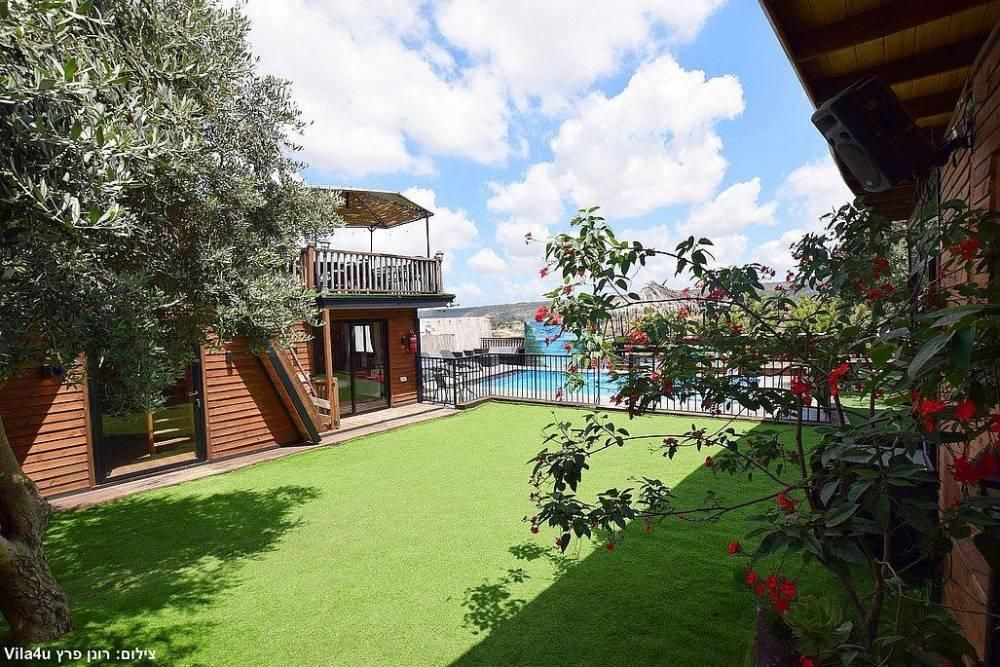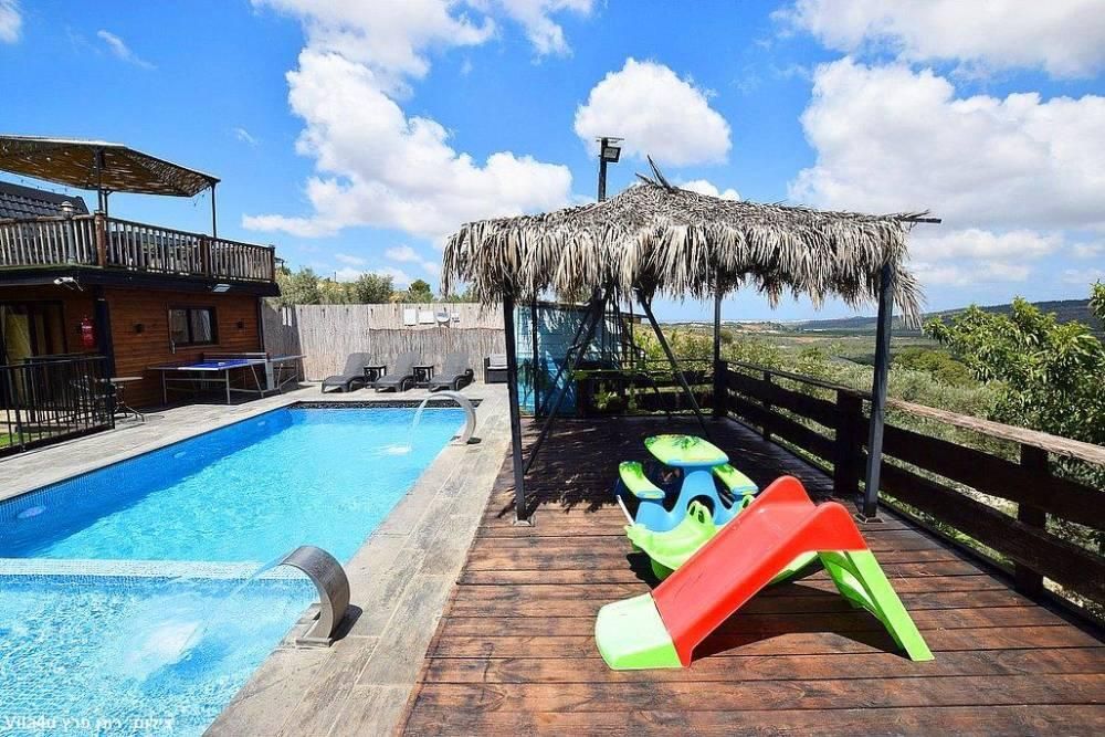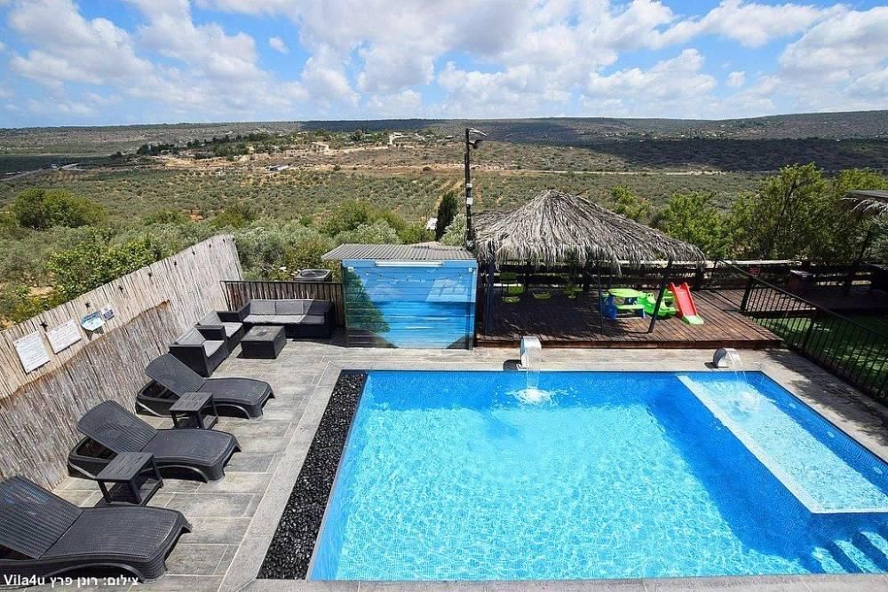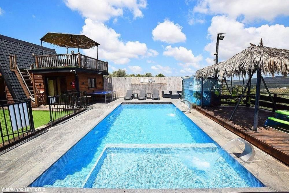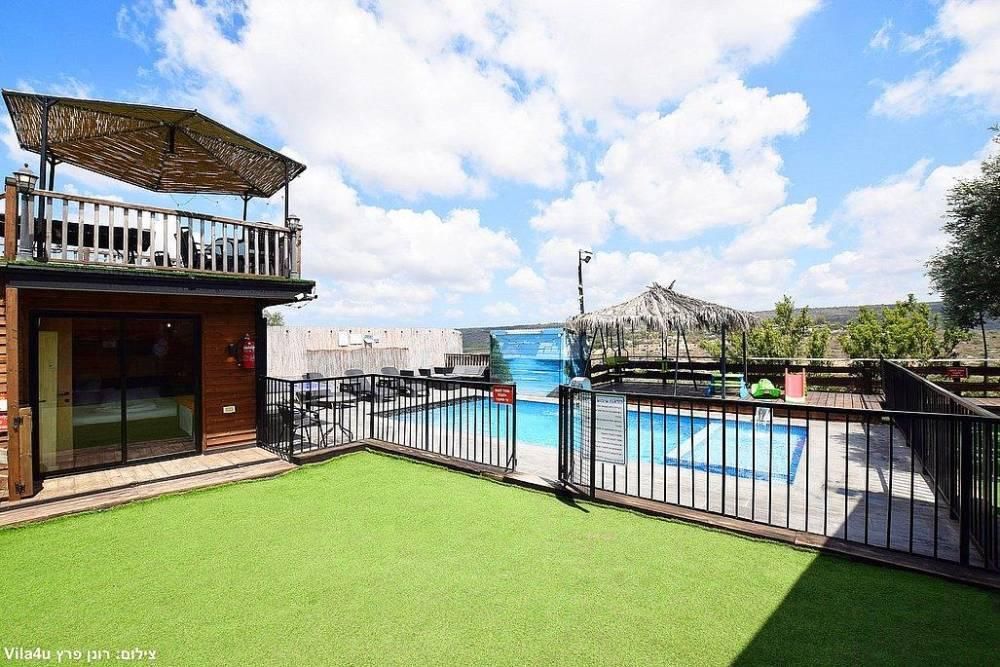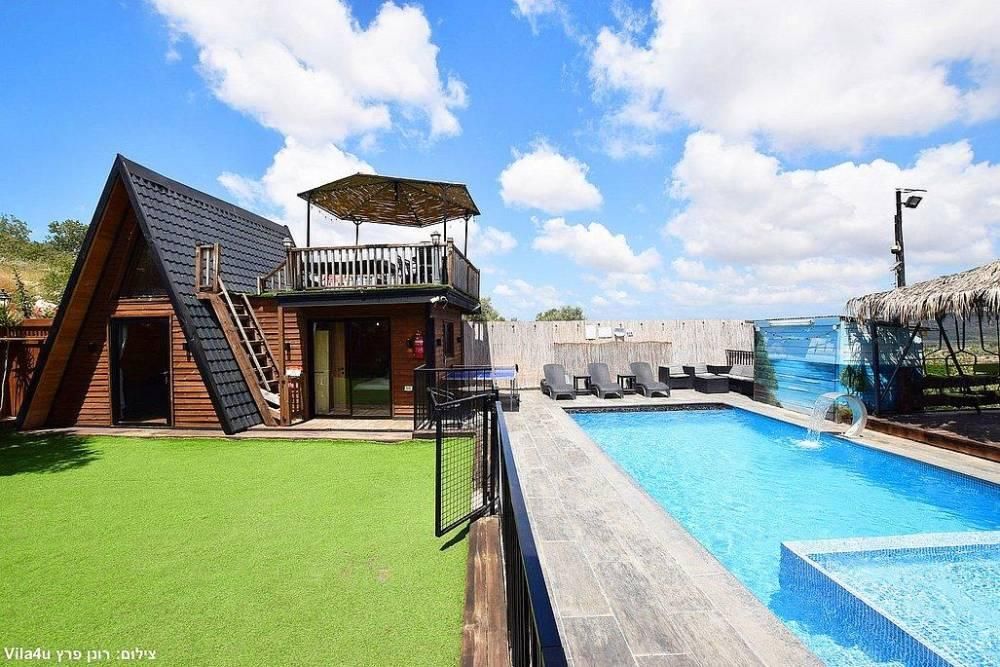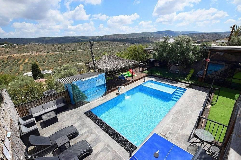 המתחם החיצוני כולל בריכת שחייה מחוממת מקורה, פינות ישיבה נוחות, עמדת גריל איכותית ומשחקי שולחן להנאת כל המשפחה.