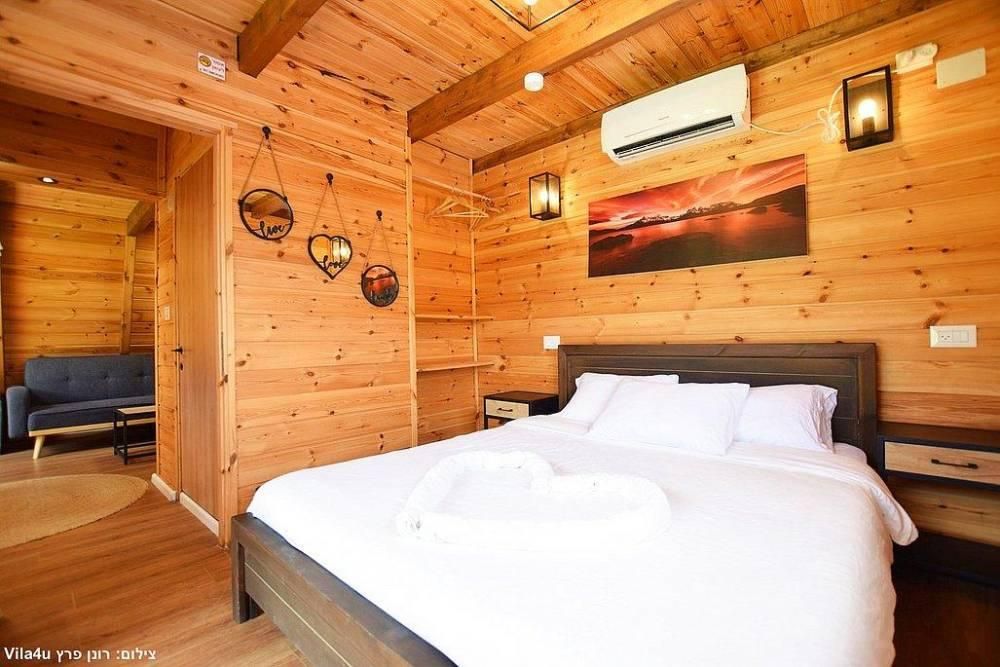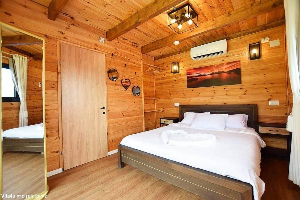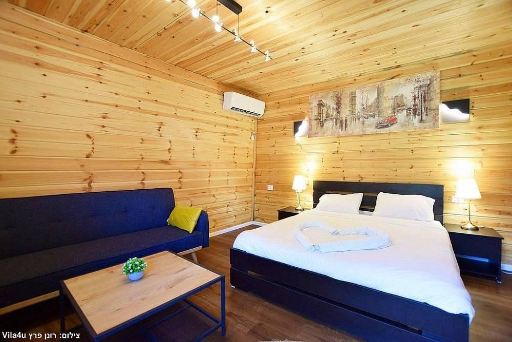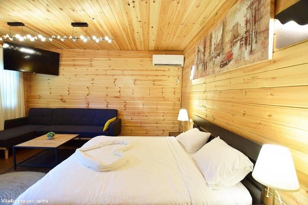 כל בקתה מתאימה לזוג ועד חמישה ילדים ותינוק, ומאובזרת במיטה זוגית נוחה, סלון מרווח, פינת ישיבה משפחתית, מיטות ילדים ולול לתינוק.