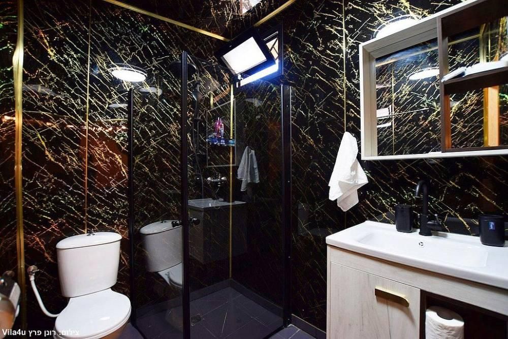- חדר רחצה עם מקלחת ושירותים לכל בקתה.