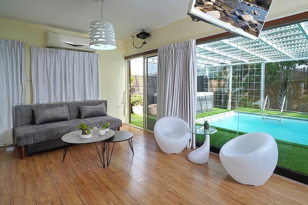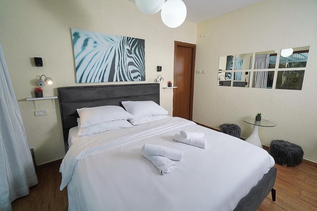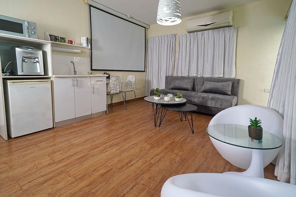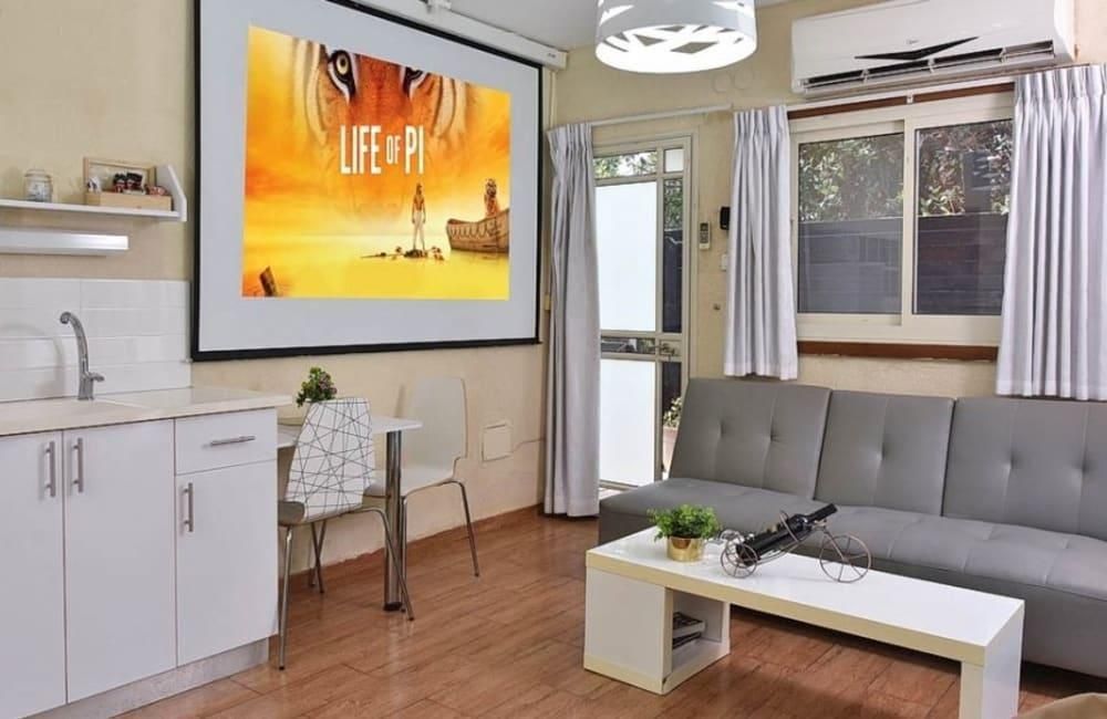 סלון מעוצב (נפתח למיטה זוגית) עם טלוויזיה LCD מתכווננת עם חיבור לערוצי YES