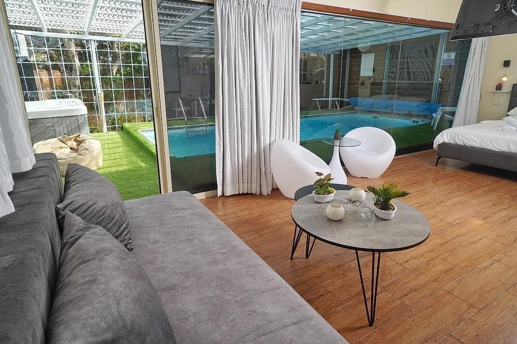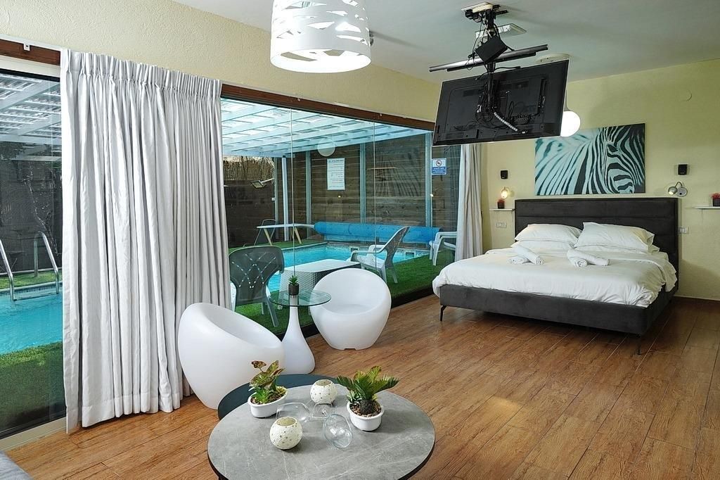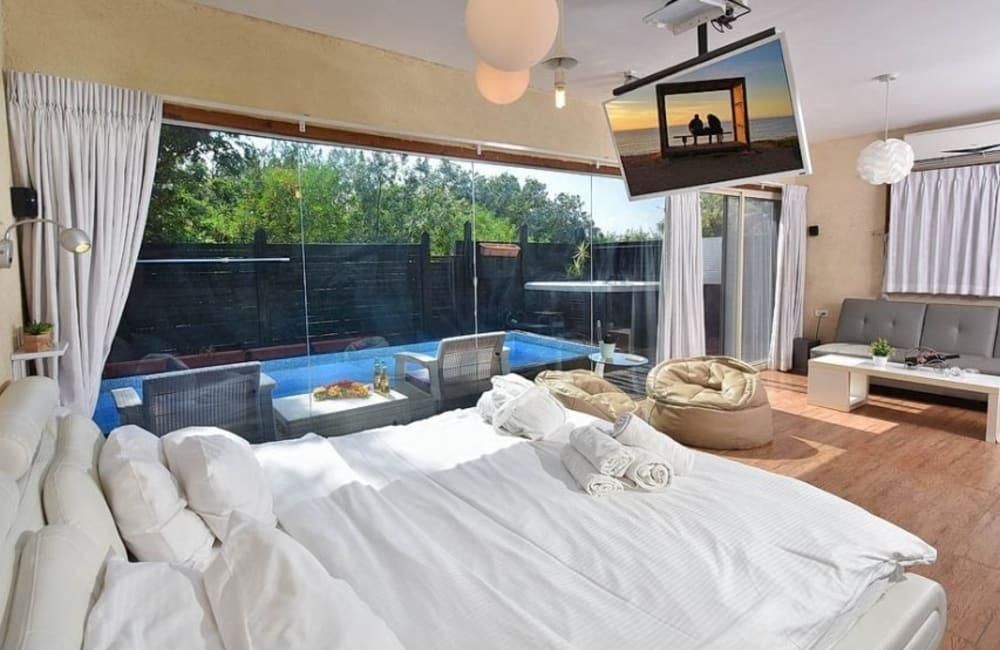 בכל אחת מהסוויטות תוכלו להנות מבריכה מחוממת ומקורה, ג'קוזי ספא מפנק, סוויטה מעוצבת בקפידה עם מיטה זוגית רחבה, טלוויזיה ונוף אל הבריכה