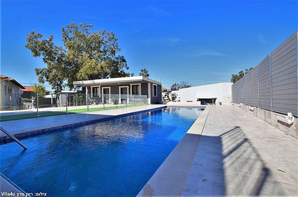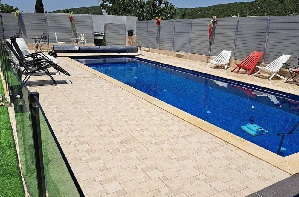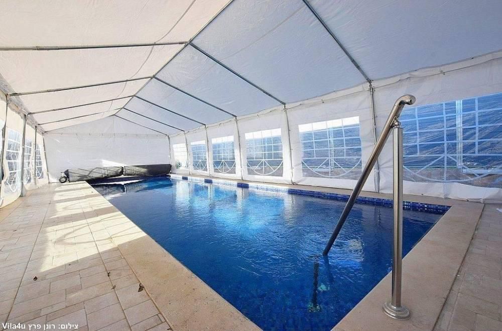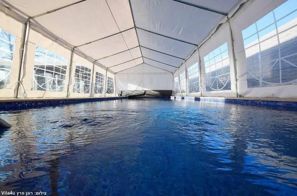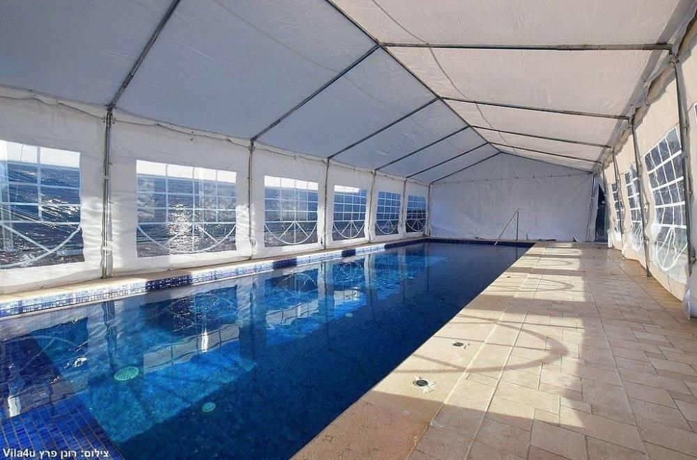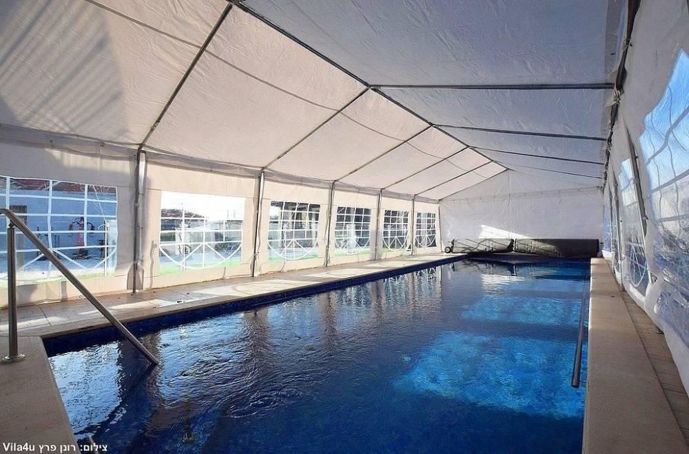 בריכת שחייה מפסיפס, גודל 11 על 4 מטר (מחוממת ומקורה בחורף) הבריכה מגודרת