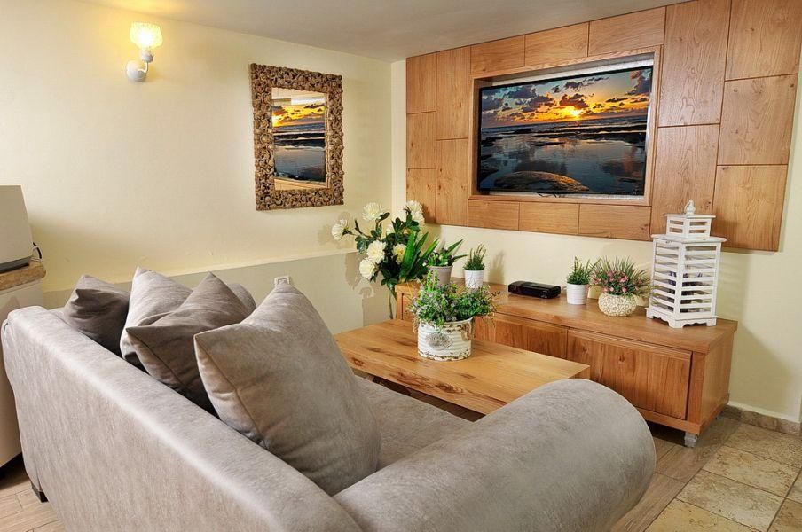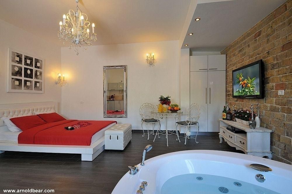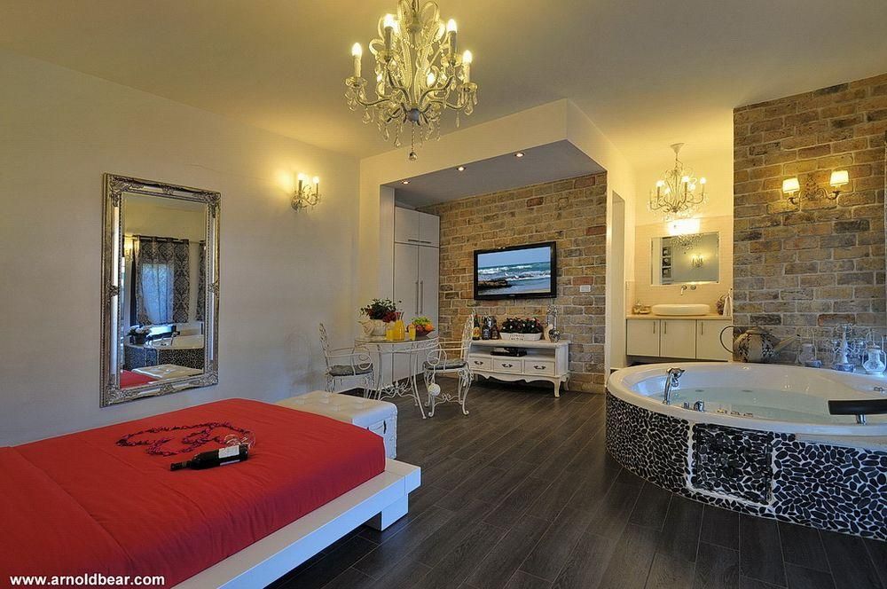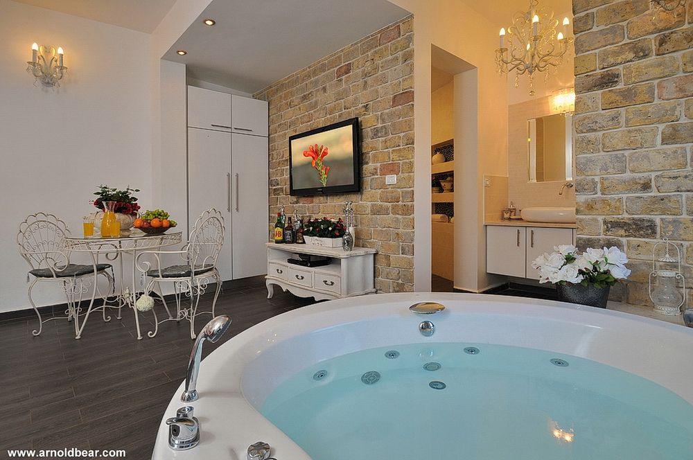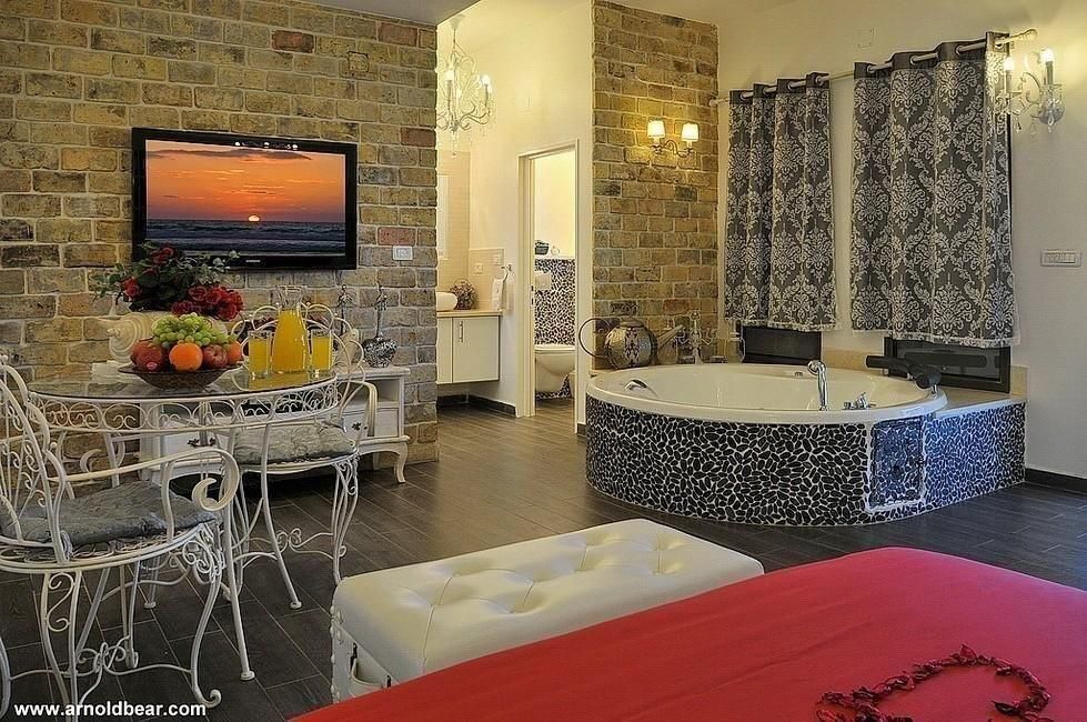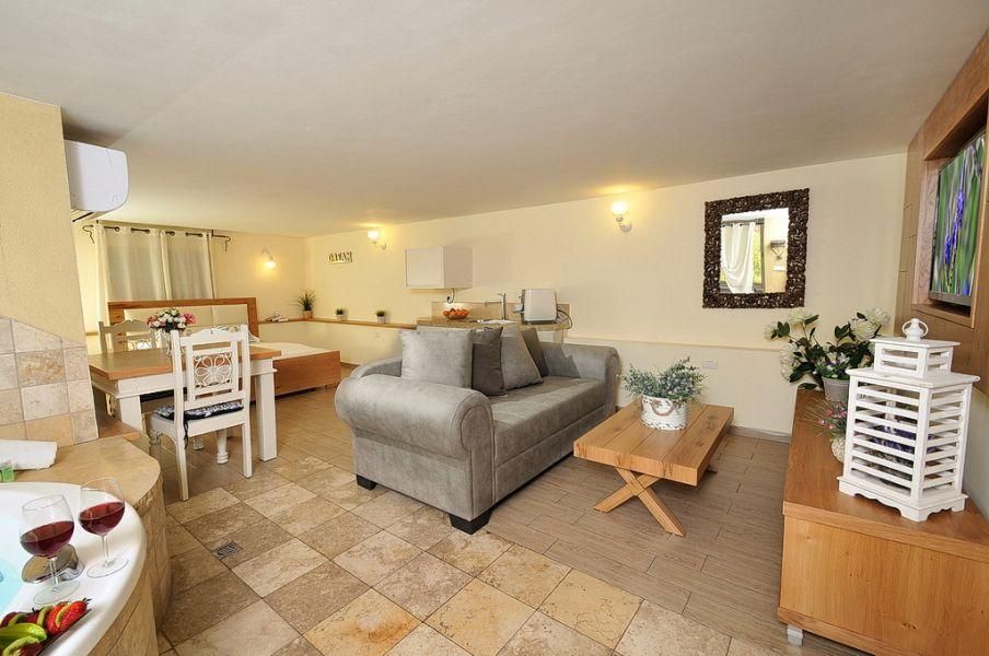 אבזור הסוויטות:מיטה זוגית רחבהחדר רחצה עם מקלחת, שירותים ומגבות נקיות ג'קוזי גדול ומפנקפינת ישיבה עם LCD מטבח מאובזר: מקרר, כיריים חשמליות, מיקרוגל, כלי בישול,טוסטר, בר מים ופינת קפה, מכונת אספרסו