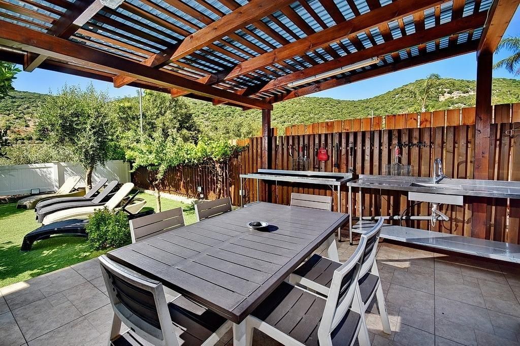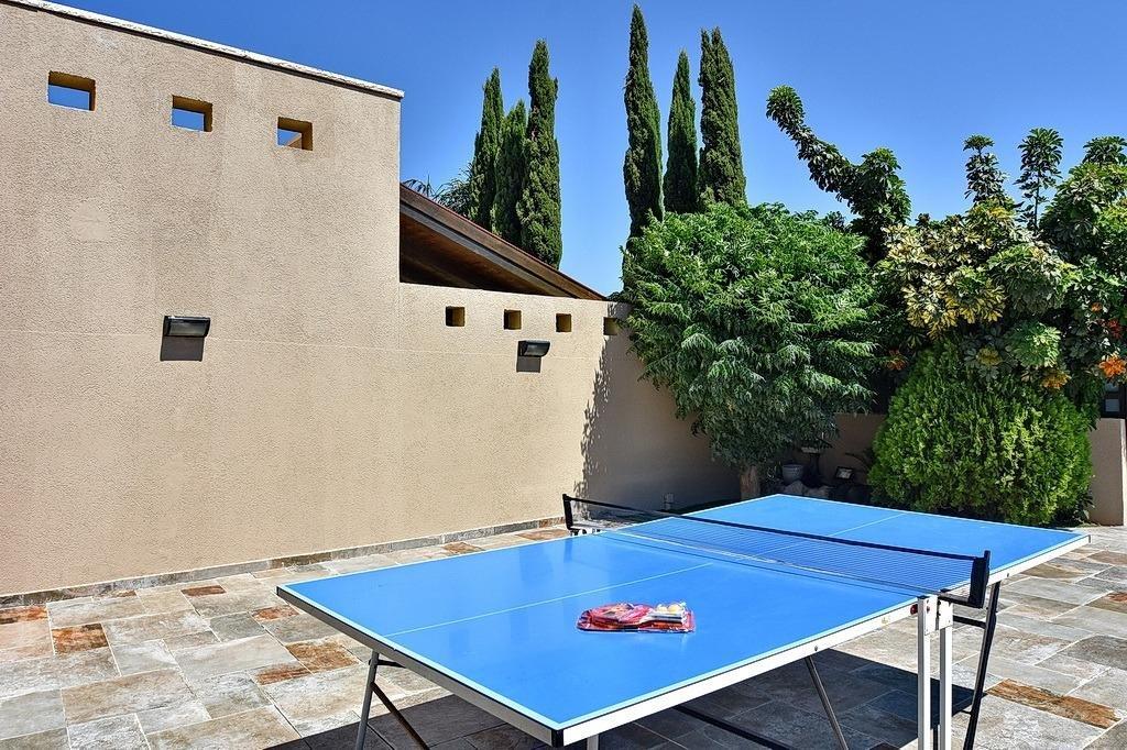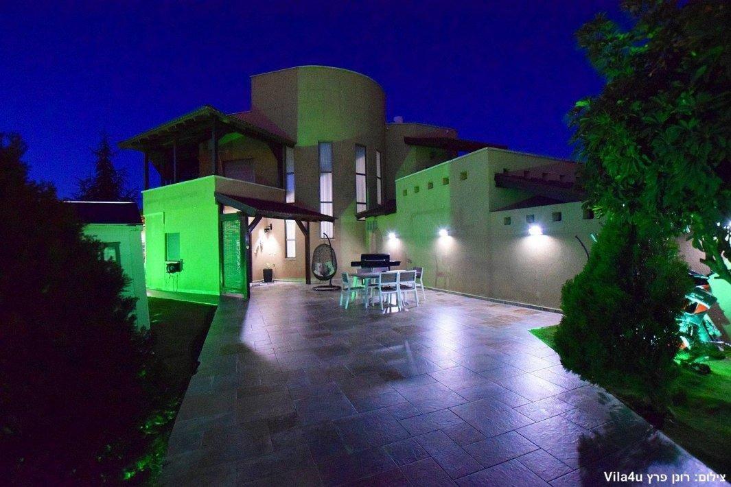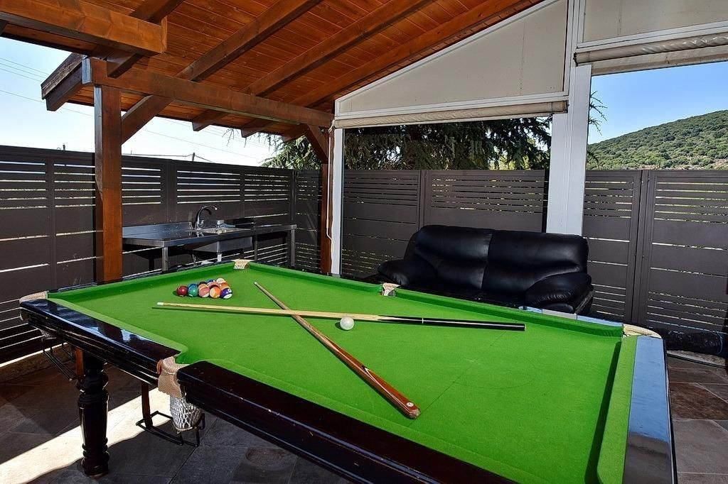 עמדת מטבח חיצונית עם פינת מנגל מקרר גדול וכיור פינות ישיבה ושיזוף פינת אוכל חיצונית מדשאות ירוקותשולחנות משחק - סנוקר, ופינג פונג