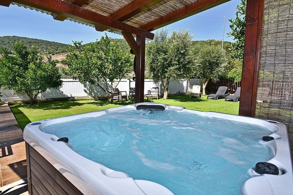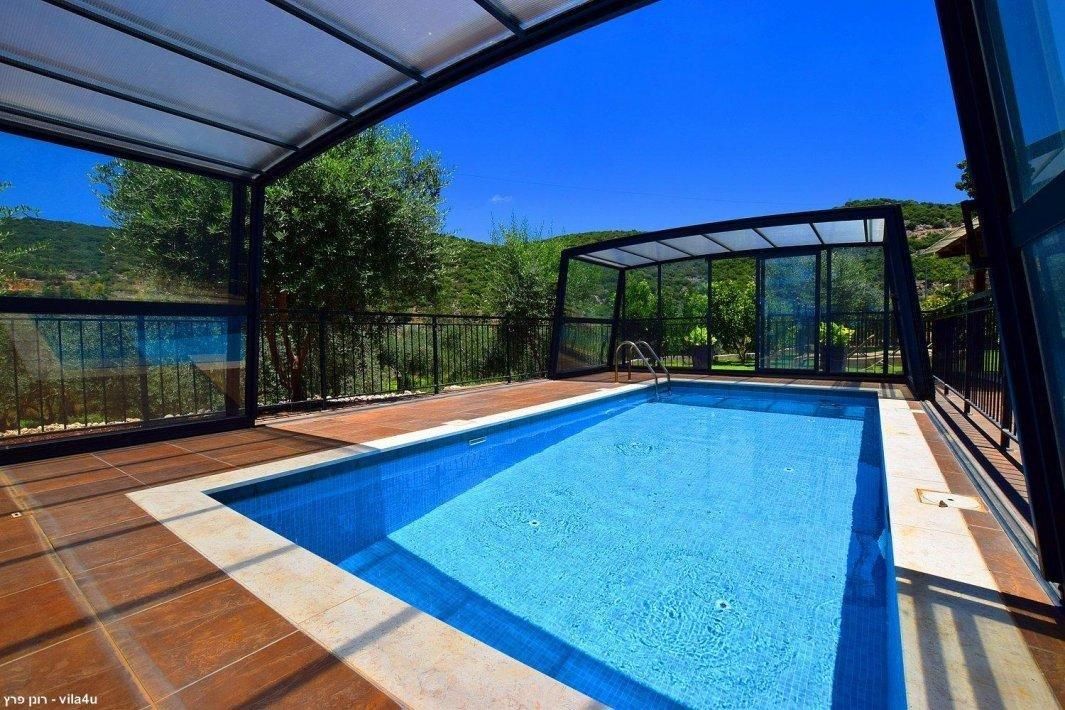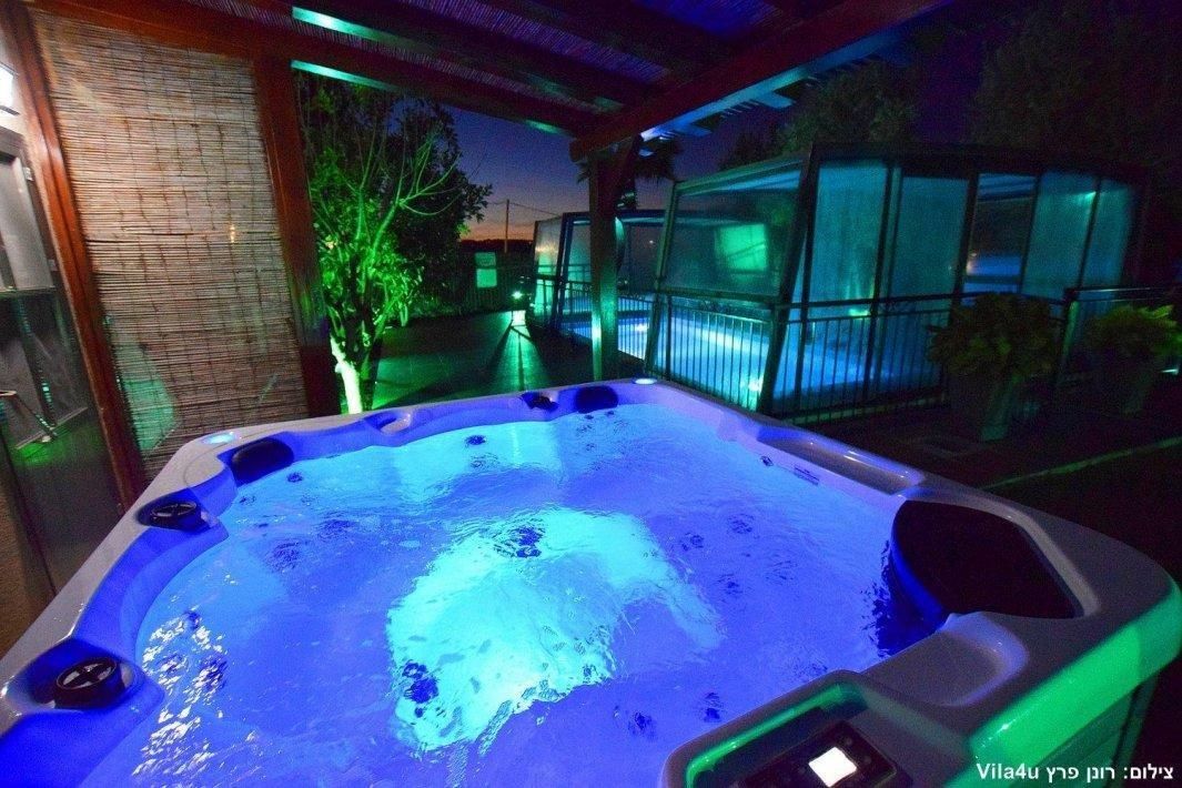 מתחם החוץבריכת שחייה מחוממת ומקורה בקירוי זכוכיתג'קוזי ספא מפנק