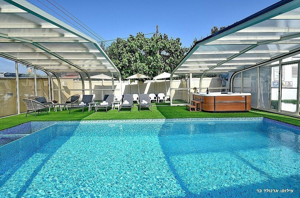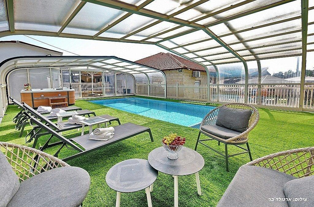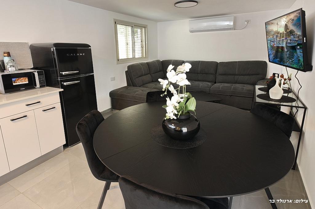 סוויטה חלומית עם מטבחון מאובזר, חדר רחצה, פינת אוכל ויציאה לחצר מרהיבה הכוללת מתחם חיצוני ענק עם בריכת שחייה צלולה (מחוממת מקורה בחורף), משחקי שולחן, פינת BBQ ועוד...