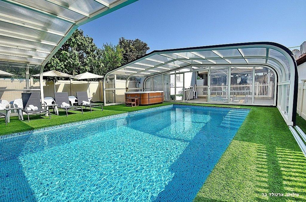 בריכת שחייה גדולה בגודל 8.5X4 מטר מחוממת מקורה