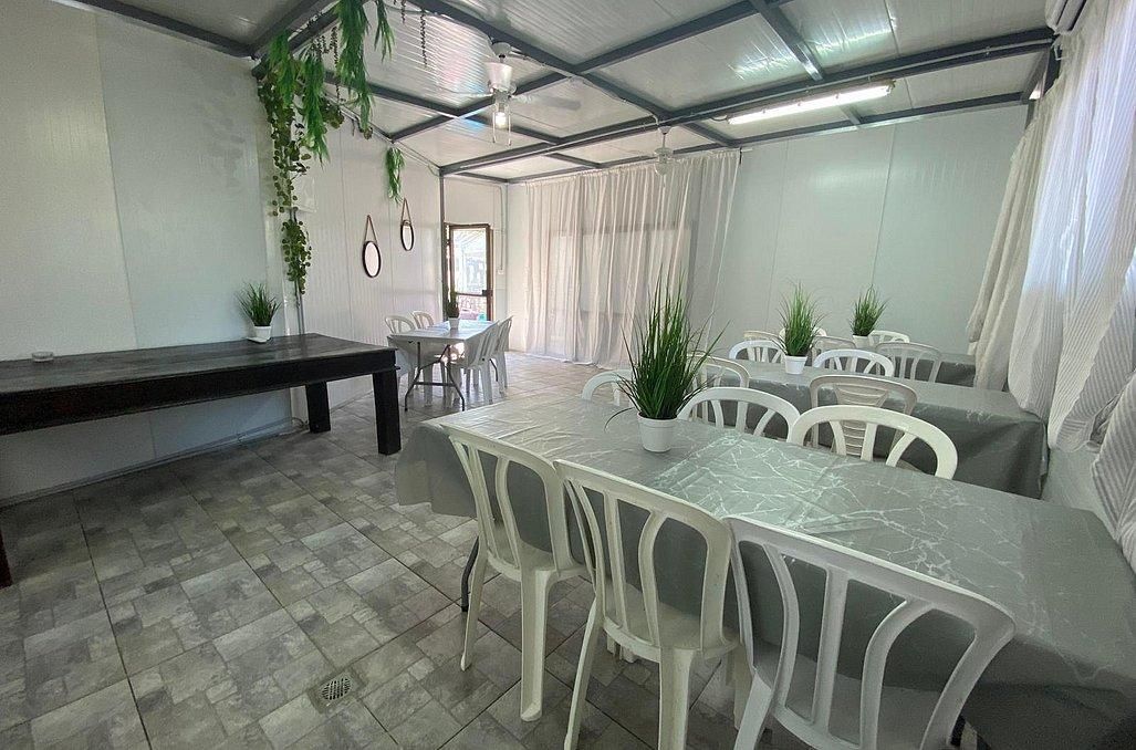 חצר ענקית ומטופחת מקיפה את החדרים ומציעה: