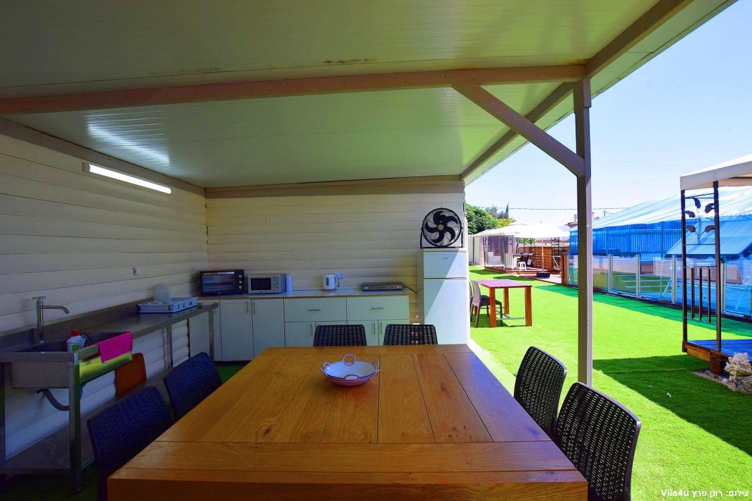 מטבח גדול לבישול מאובזר קומפלט הכולל: מקרר, מיקרוגל, כיריים לבישול, טוסט אובן, קומקום חשמלי