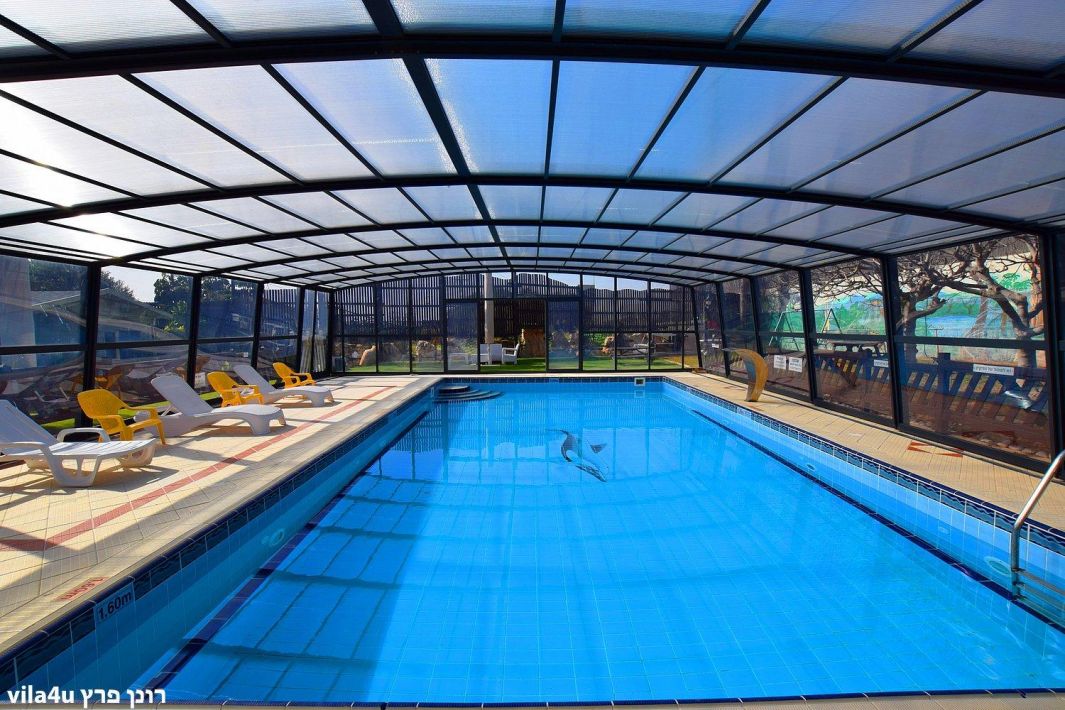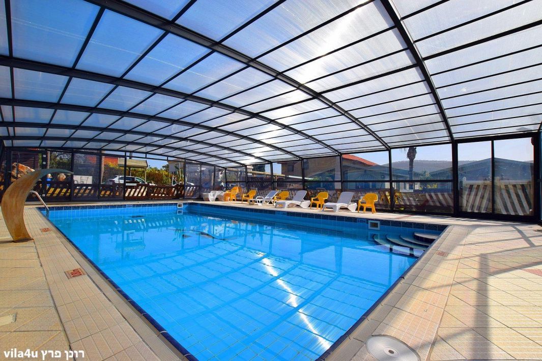 -בריכת שחייה בנויה, מחוממת ומקורה בעונה, בגודל 12 על 6