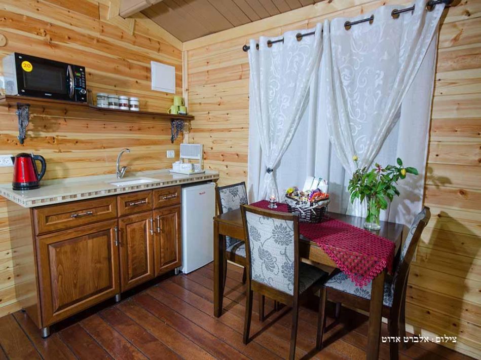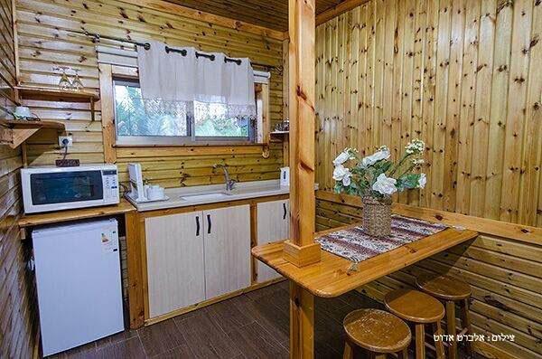 -מטבחון מאובזר היטב הכולל: מקרר, קומקום חשמלי, מיקרוגל, כלי אוכל וכלי הגשה