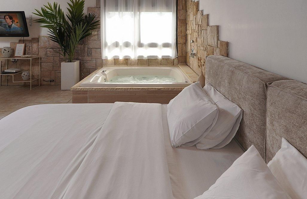 - ג’קוזי פרטי בכל סוויטה, מול חלון פנורמי לאווירה רומנטית