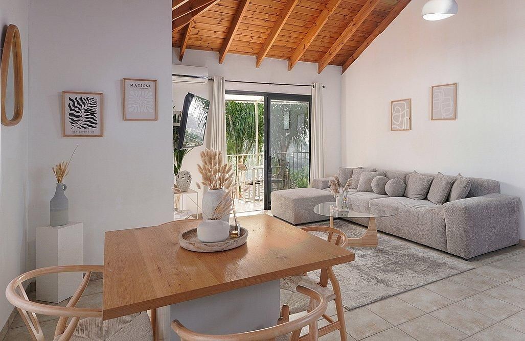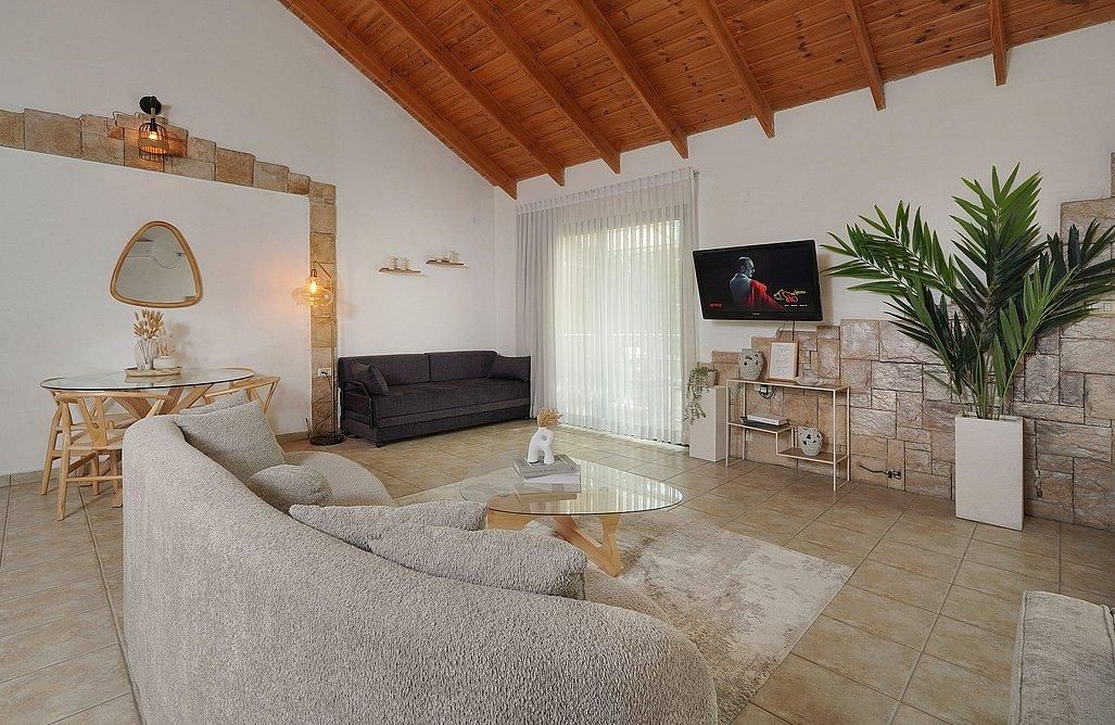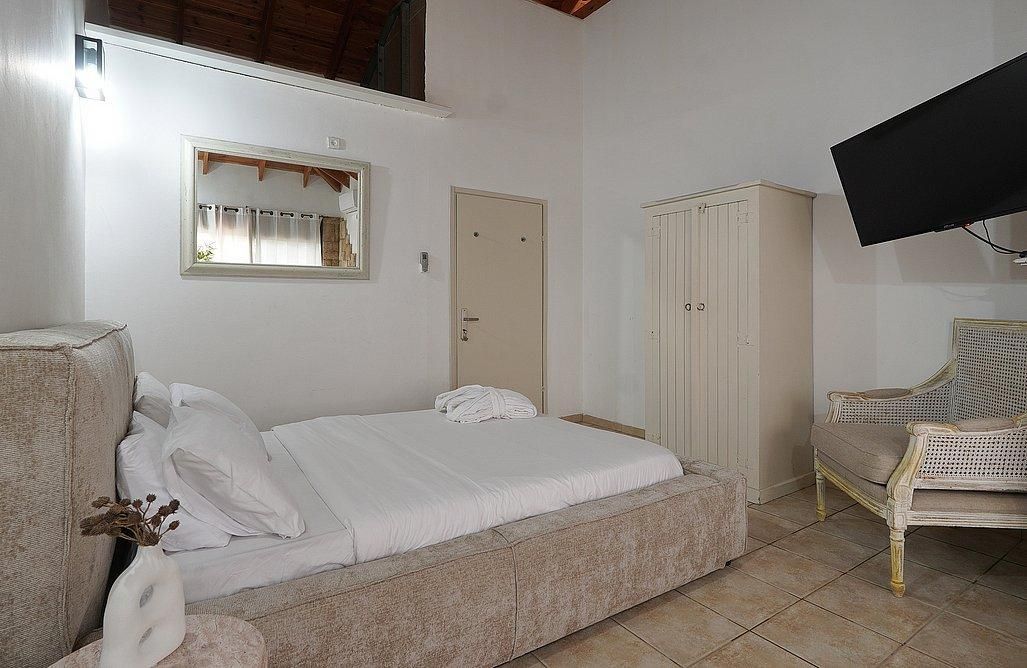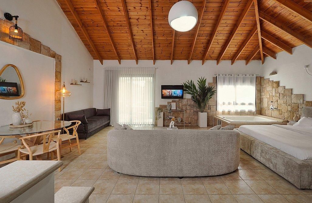 - סוויטות גדולות ומרווחות בעיצוב כפרי מודרני עם תקרות עץ גבוהות
