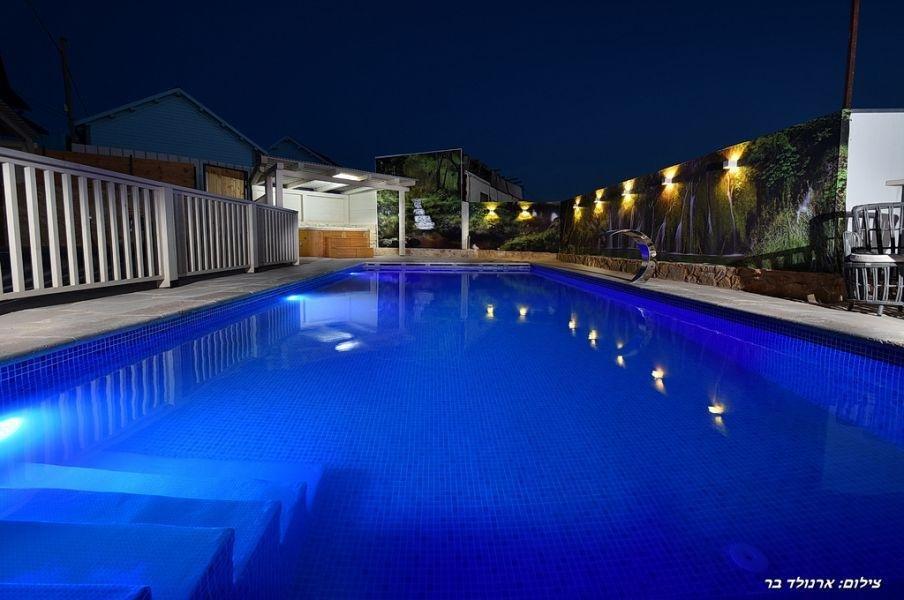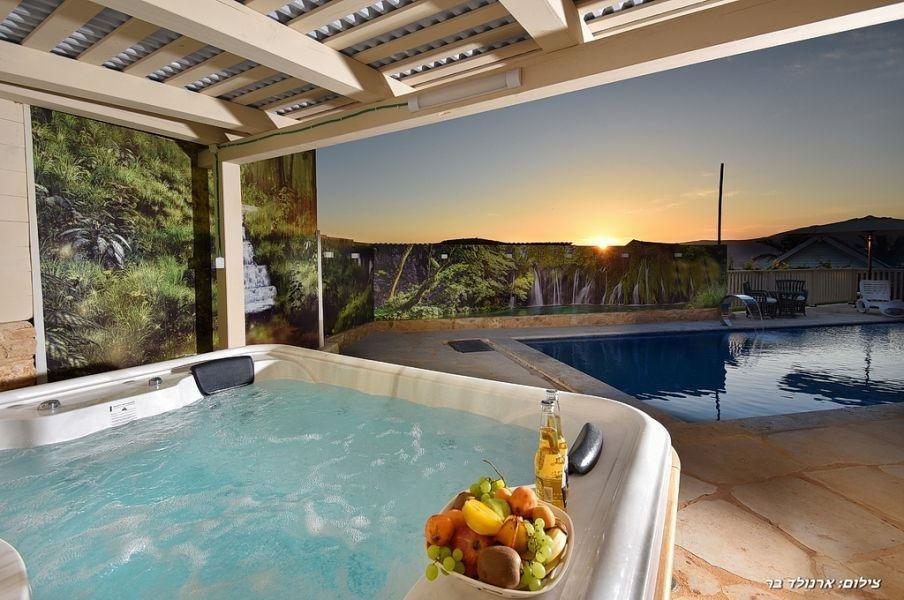 במתחם החיצוני חצר מטופחת ונקיה, בריכת שחייה מחוממת מפנקת, ג'קוזי ספא חיצוני אל מול נוף ועמדת מנגל.