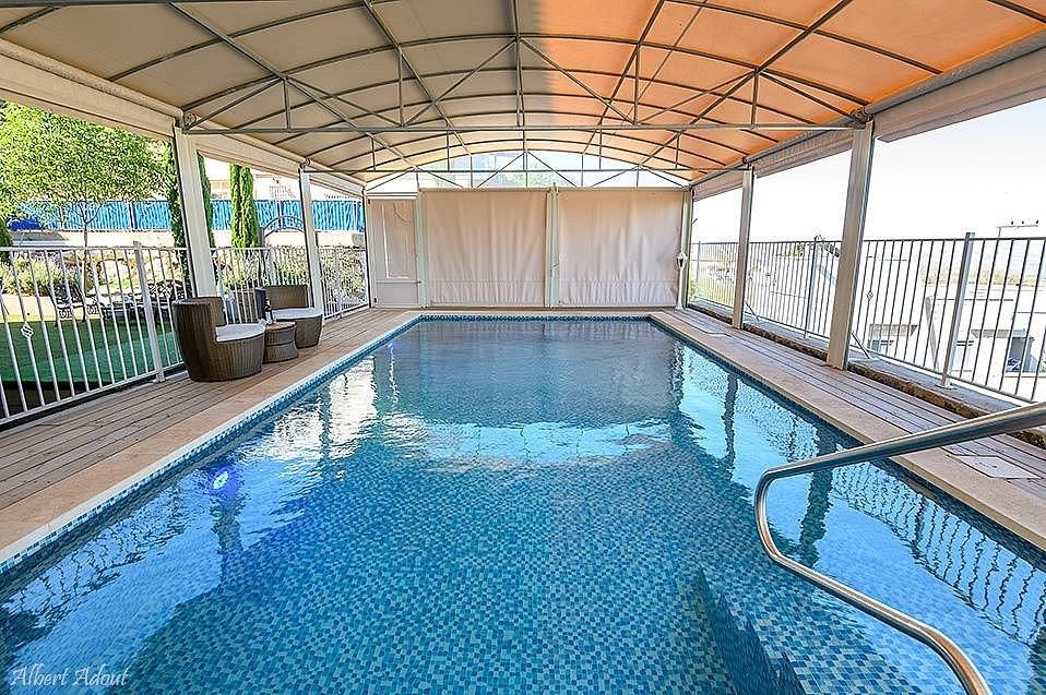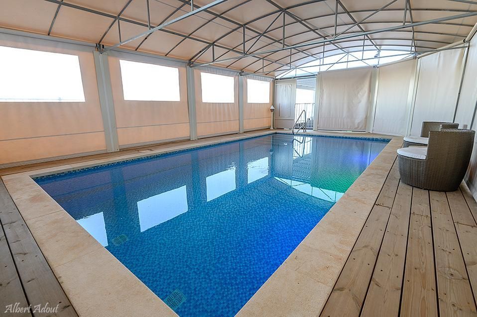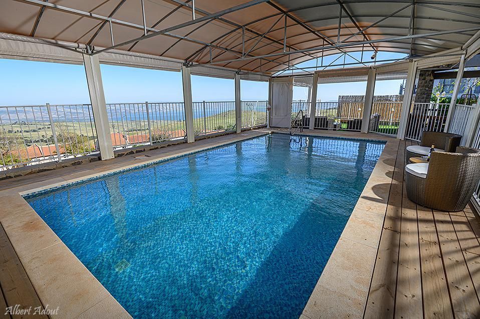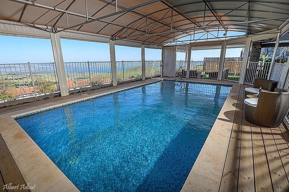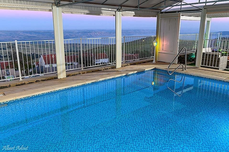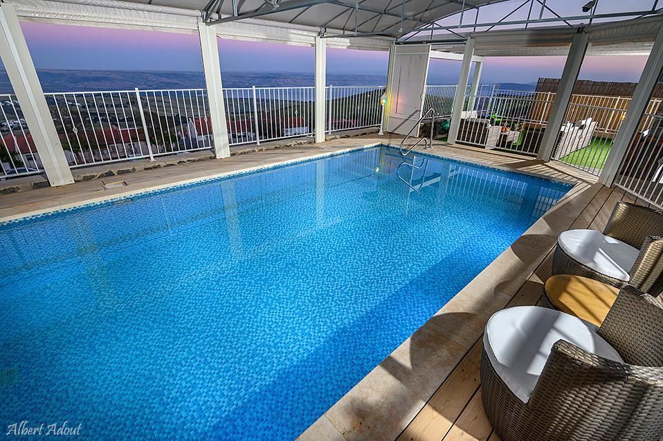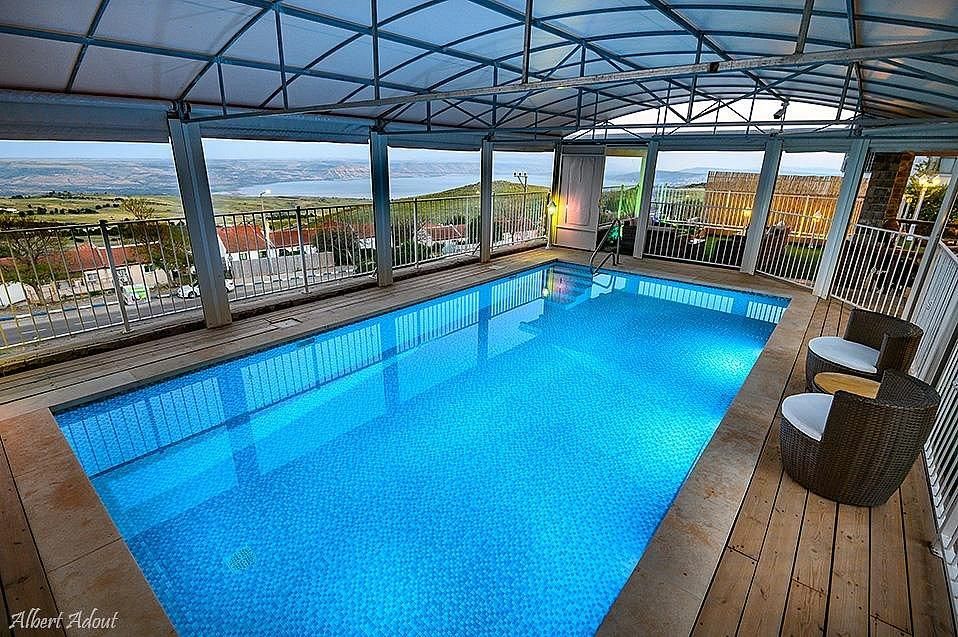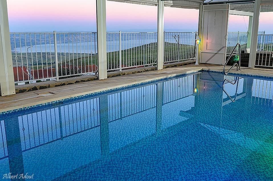 בריכת שחייה גדולה במיוחד, מוצנעת, מחוממת ומקורה (עם אפשרות פתיחה וסגירה קלה) ניתן לתאם שעות רחצה נפרדות (נשים וגברים) או משפחתיות בהתאם להרכב האורחים.