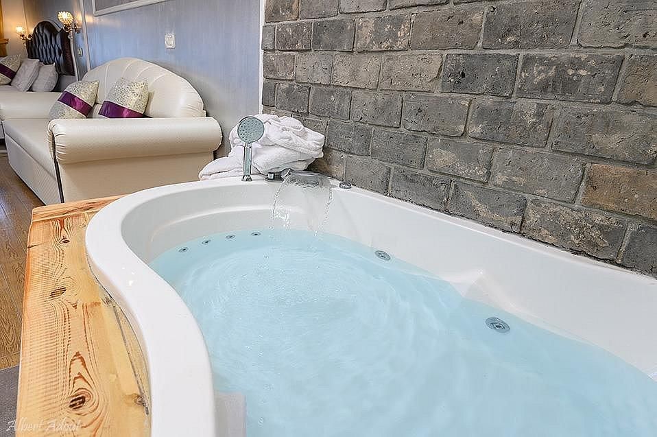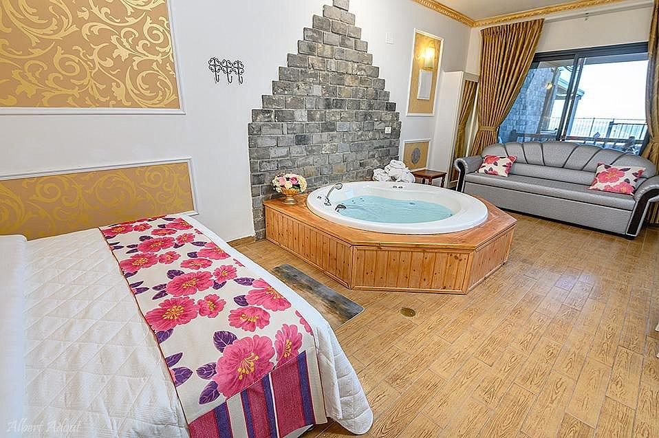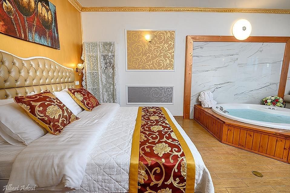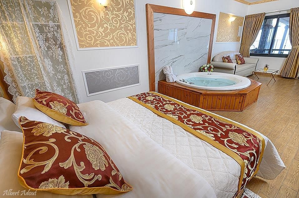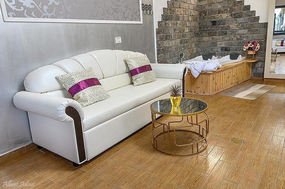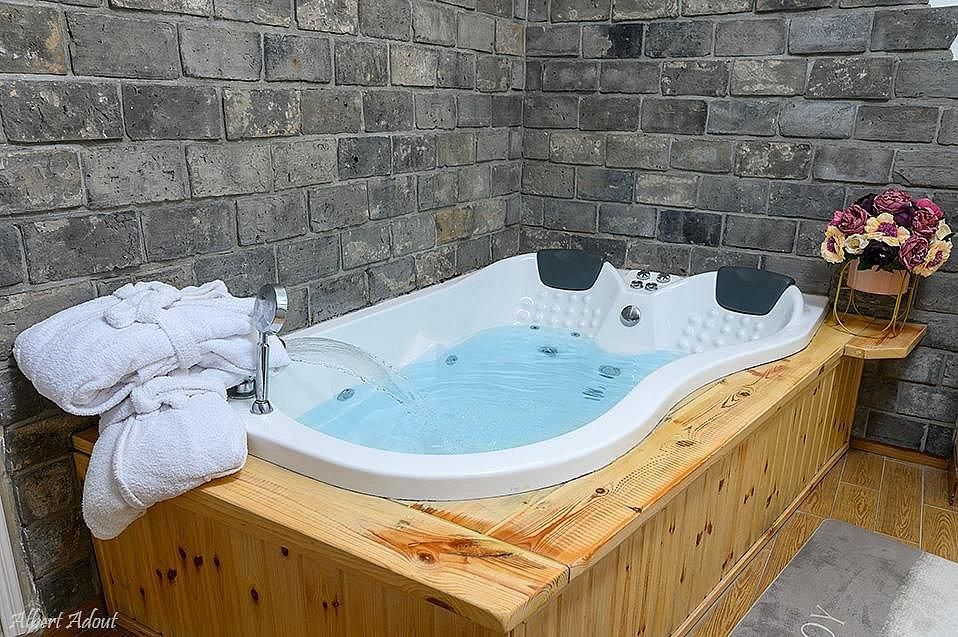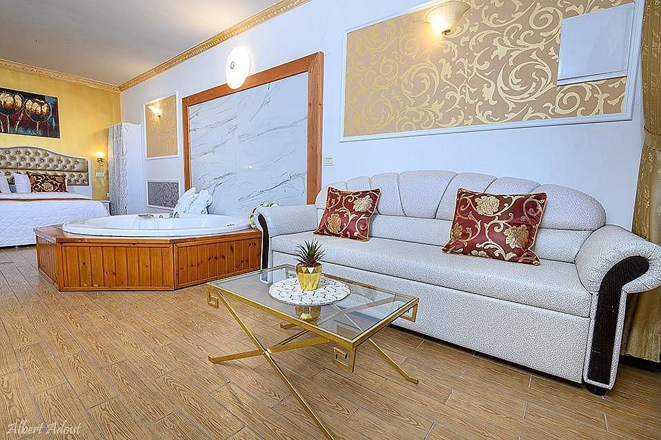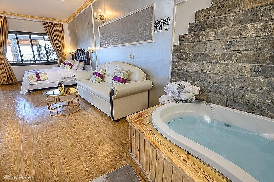 ג'קוזי גדול במרכז החדר (קיים ב3 סוויטות), מואר בתאורת לד המתחברת לרמקול בלוטות'