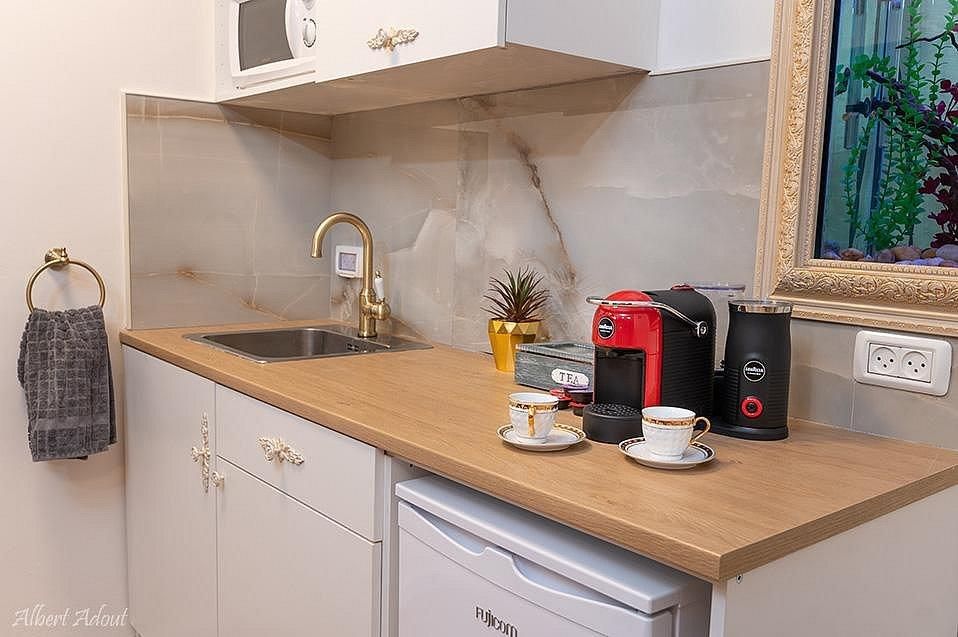 מטבחון הכולל: מיקרוגל, טוסטר ומכונת אספרסו איכותית