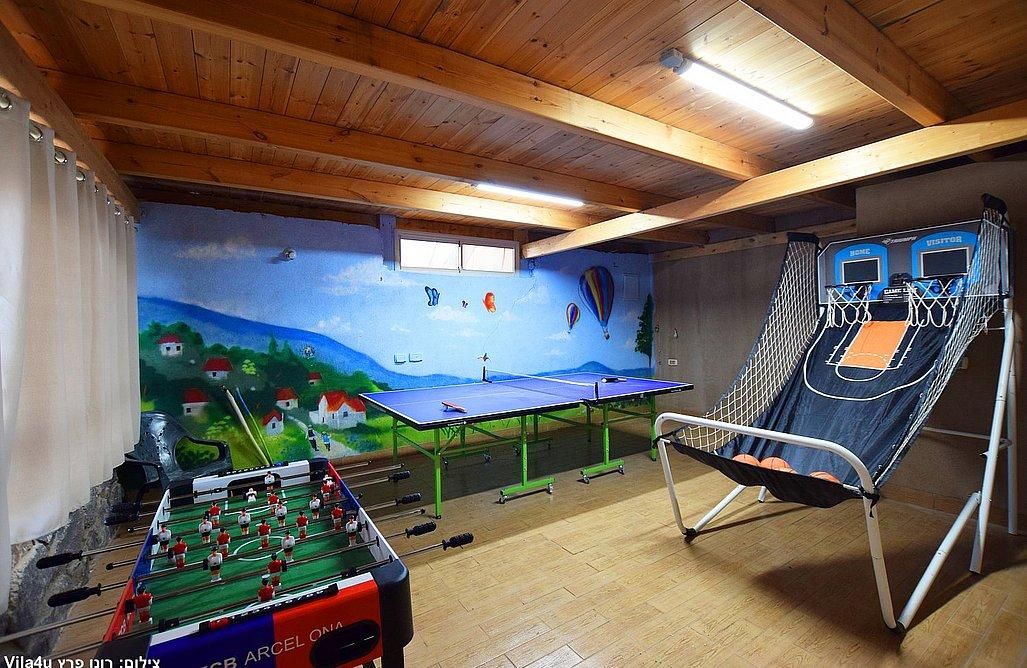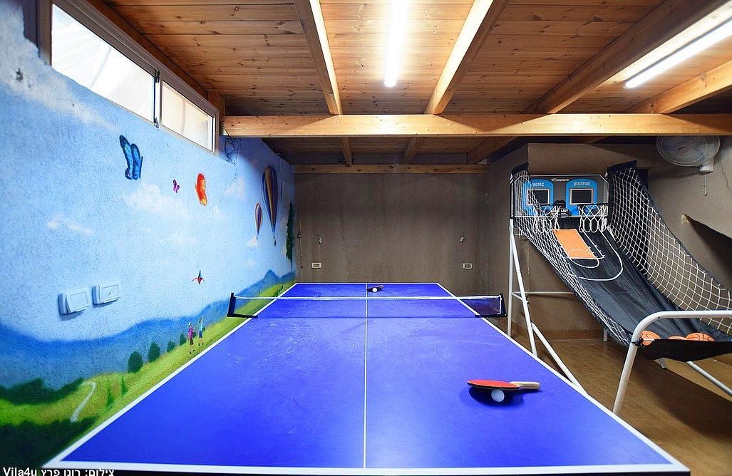 משחקים: שולחנות פינג פונג, כדורגל ומתקן כדורסל זוגי