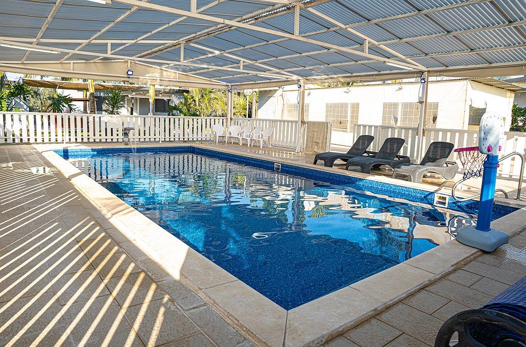 7. בריכת השחייה מגודרת ונעולה, ולכן באחריות ההורים להשגיח על ילדיהם עד גיל 16 ולאפשר כניסה למתחם בריכת השחייה רק בליווי מבוגר.