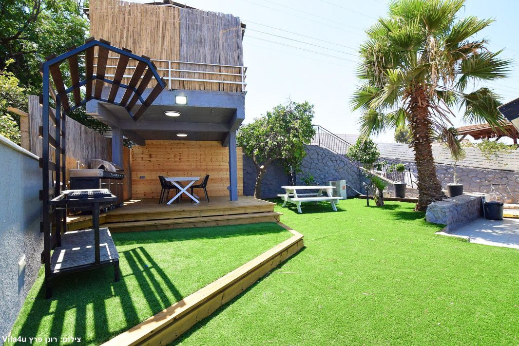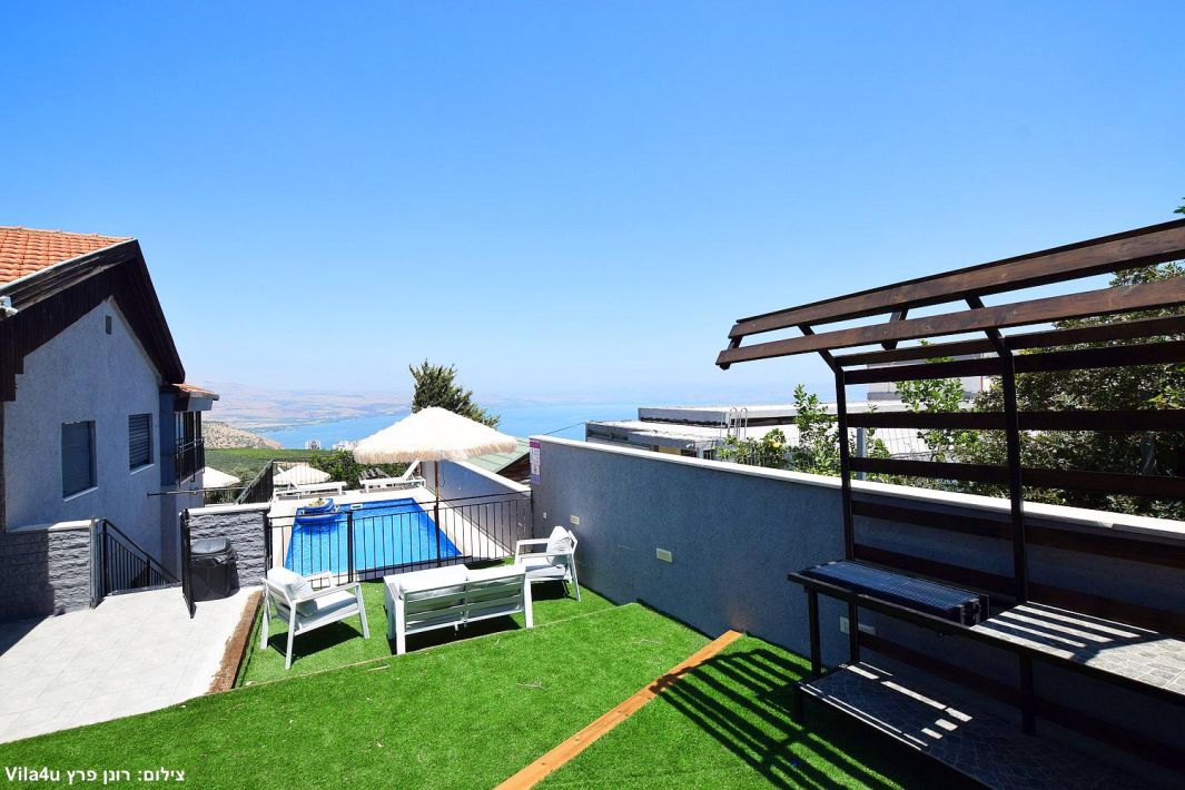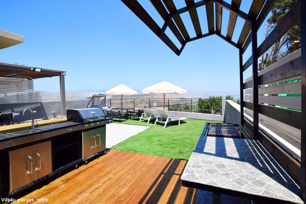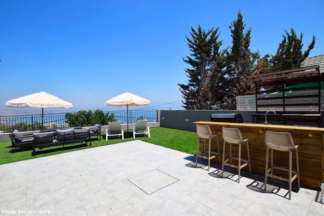 בקומה התחתונה ישנם עוד 2 חדרי שינה, מטבח מאובזר וסלון עם ספה נפתחת, בנוסף קיימת כניסה נפרדת לקומה זו ויציאה לחצר עם ריהוט גן, פינת BBQ ונוף מדהים.