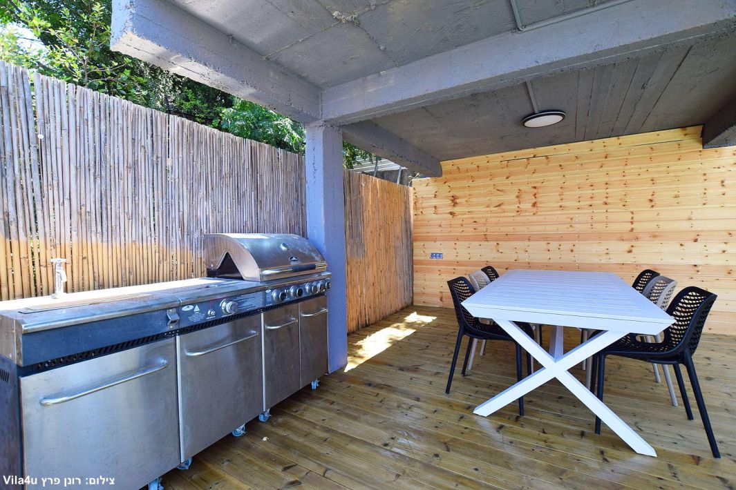 מטבח חוץ מאובזר עם משטח עבודה, כיור ופינת מנגל