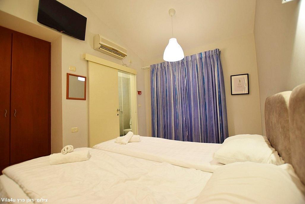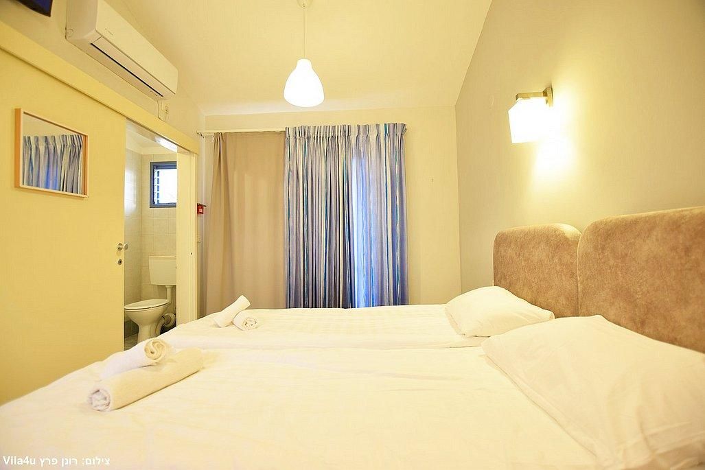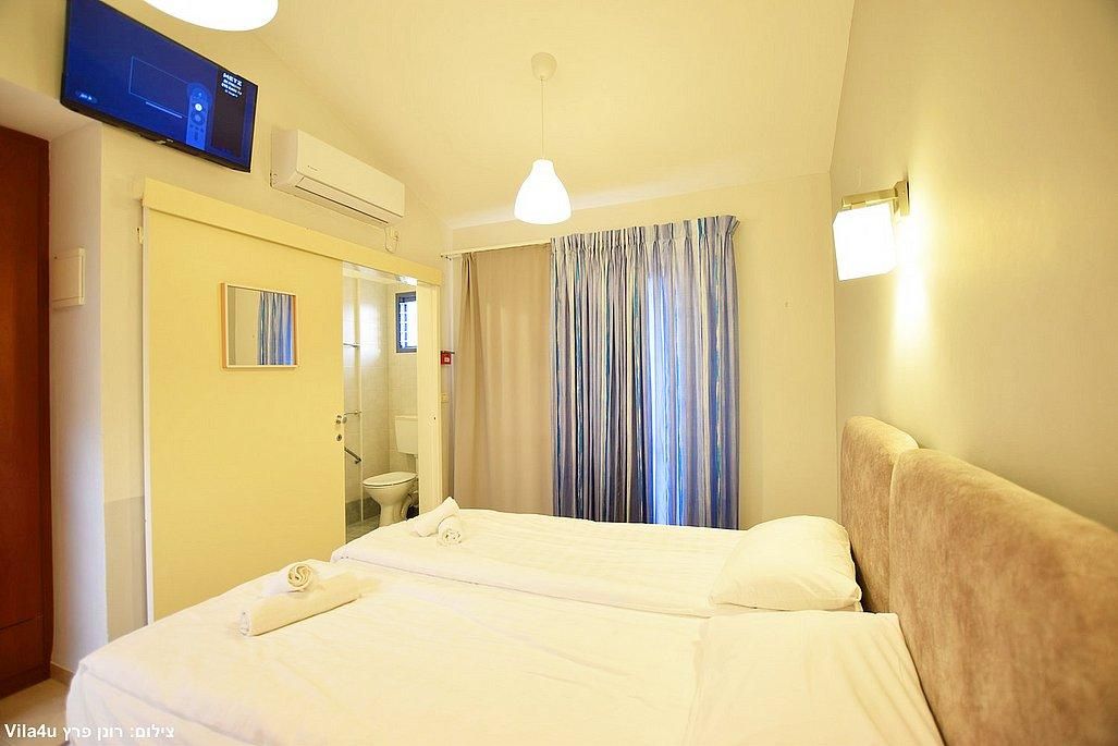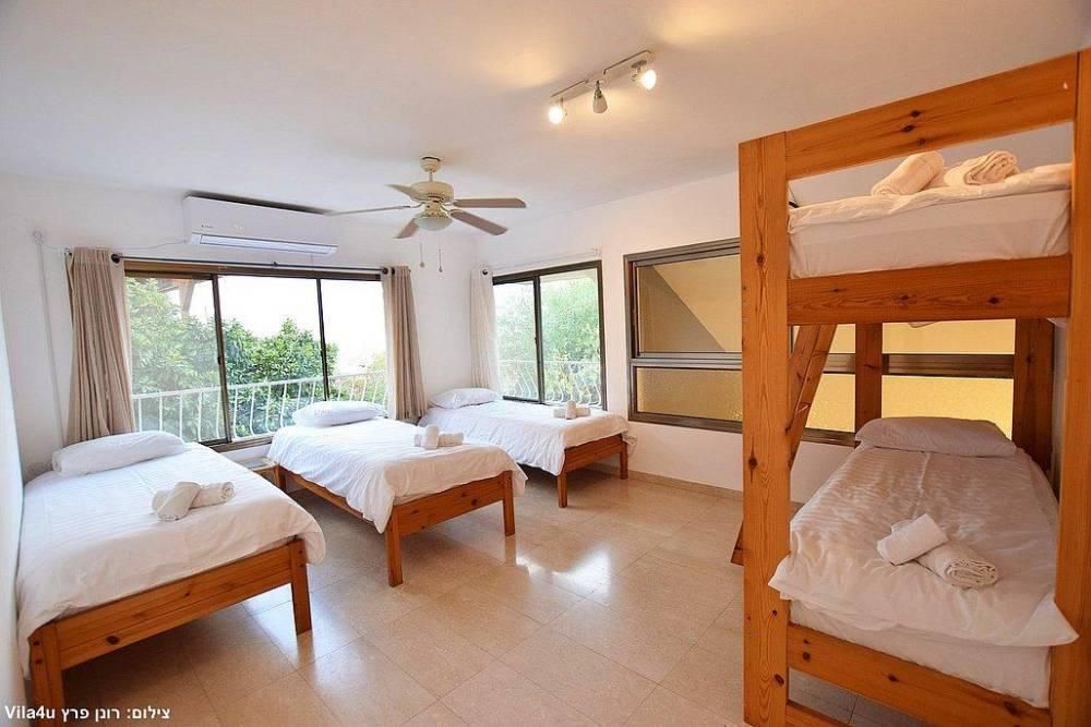 - בכל חדר מיטה זוגית בסגנון יהודי הנפתחת לעוד שתי מיטות נוספות (עד 4 מיטות בחדר)