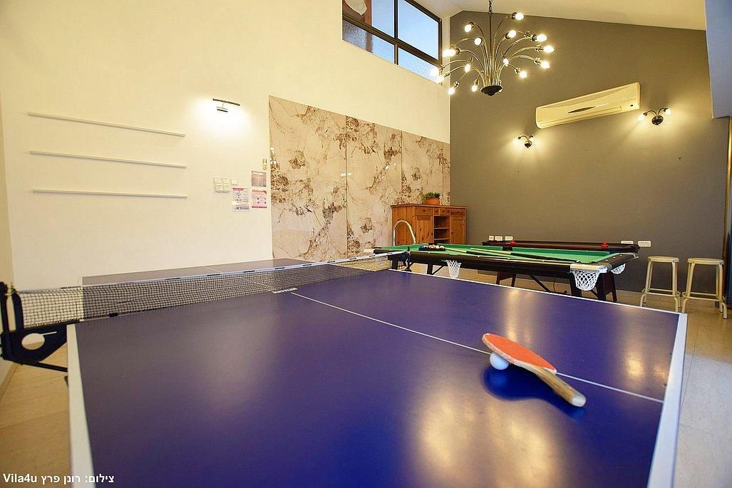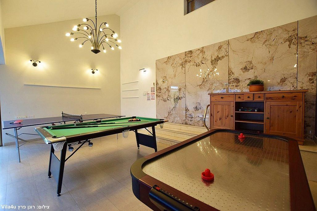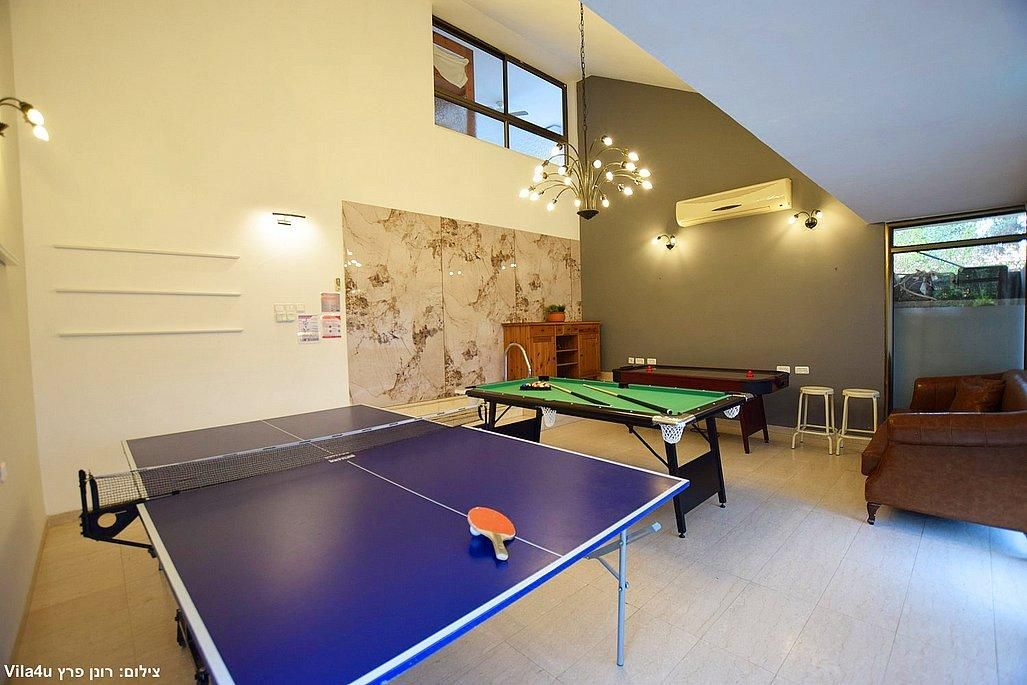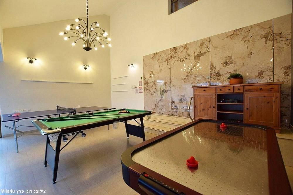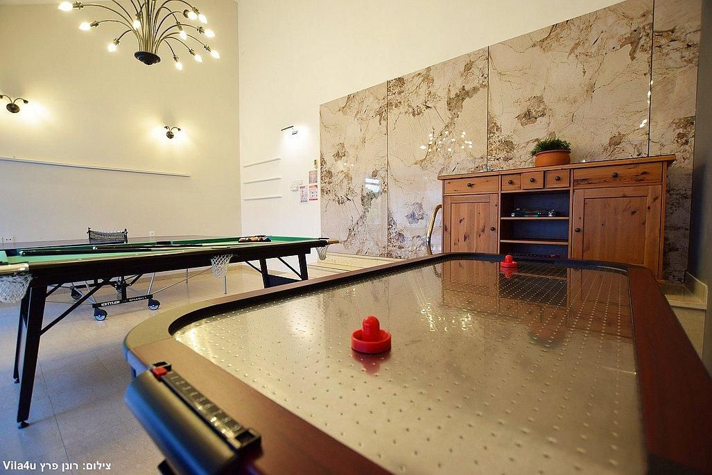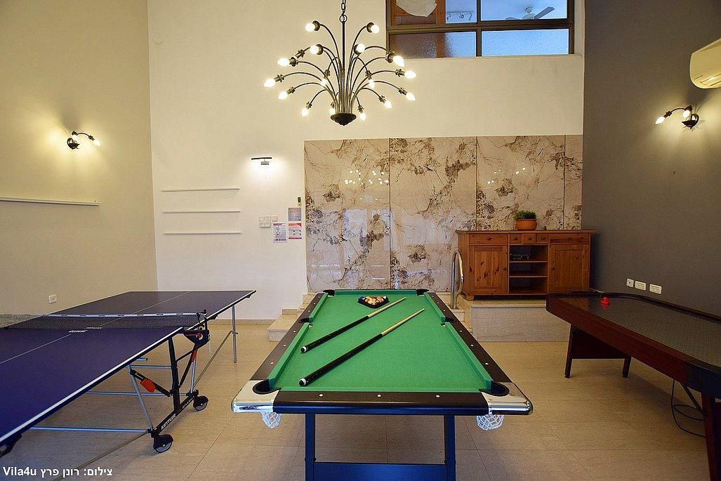 - מתחם משחקים: שולחן סנוקר, פינג פונג והוקי אוויר
