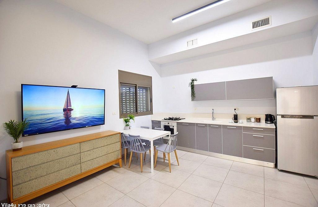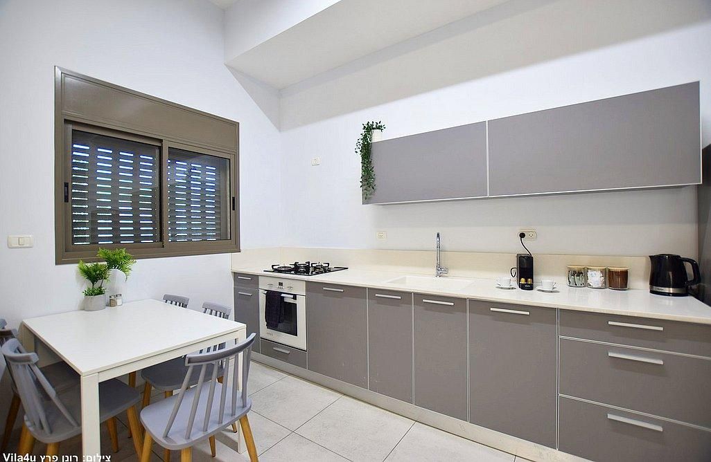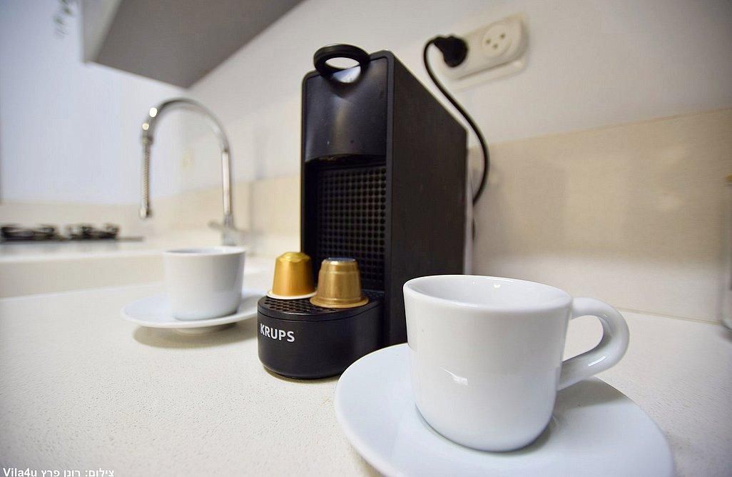 מטבח מאובזר עם פינת קפה, מקרר, תנור אפייה, קומקום חשמלי