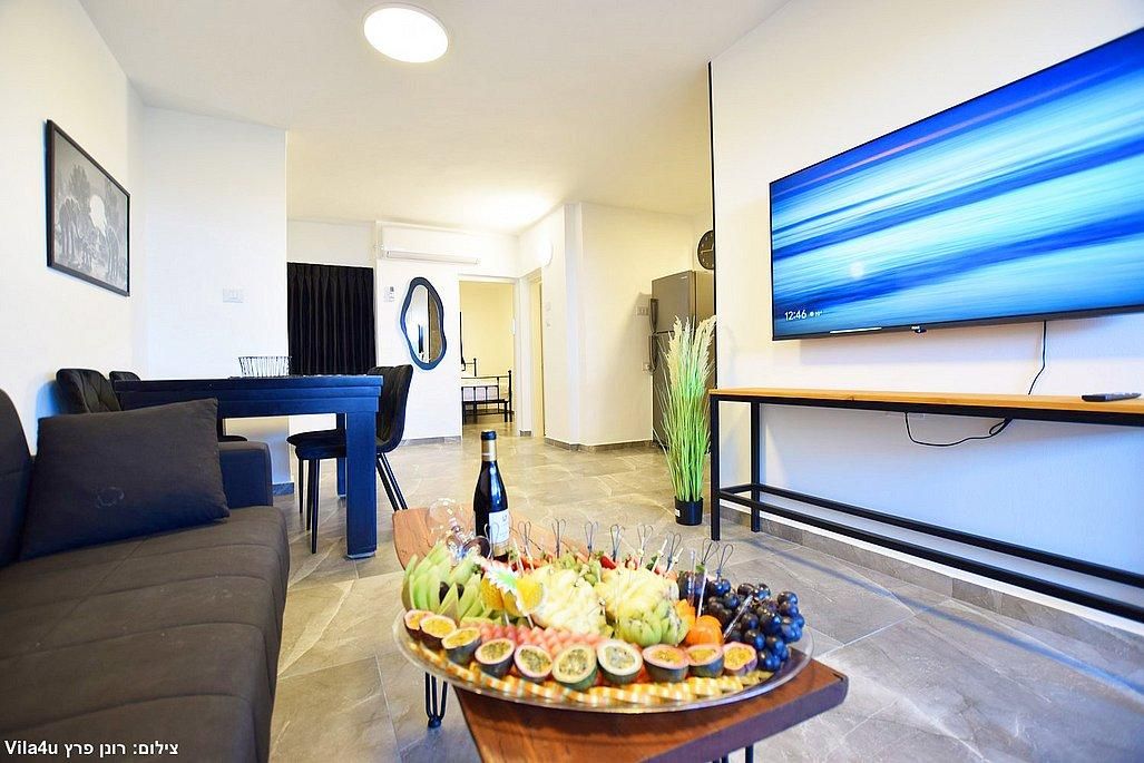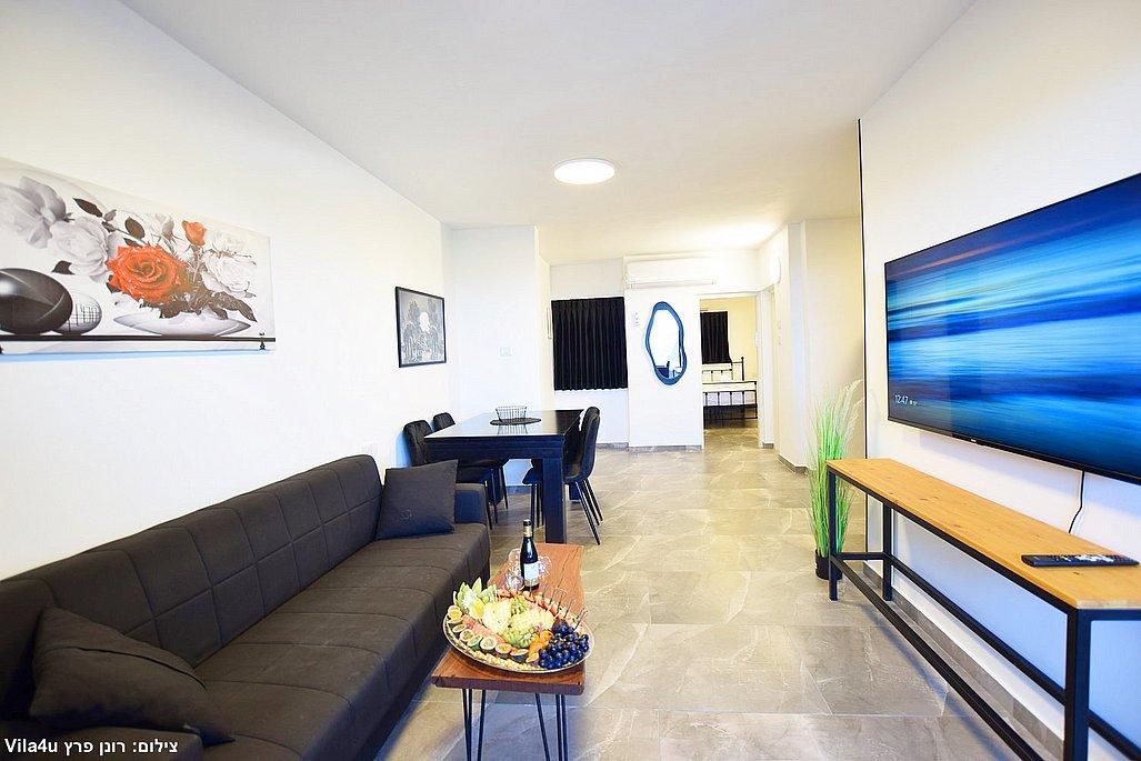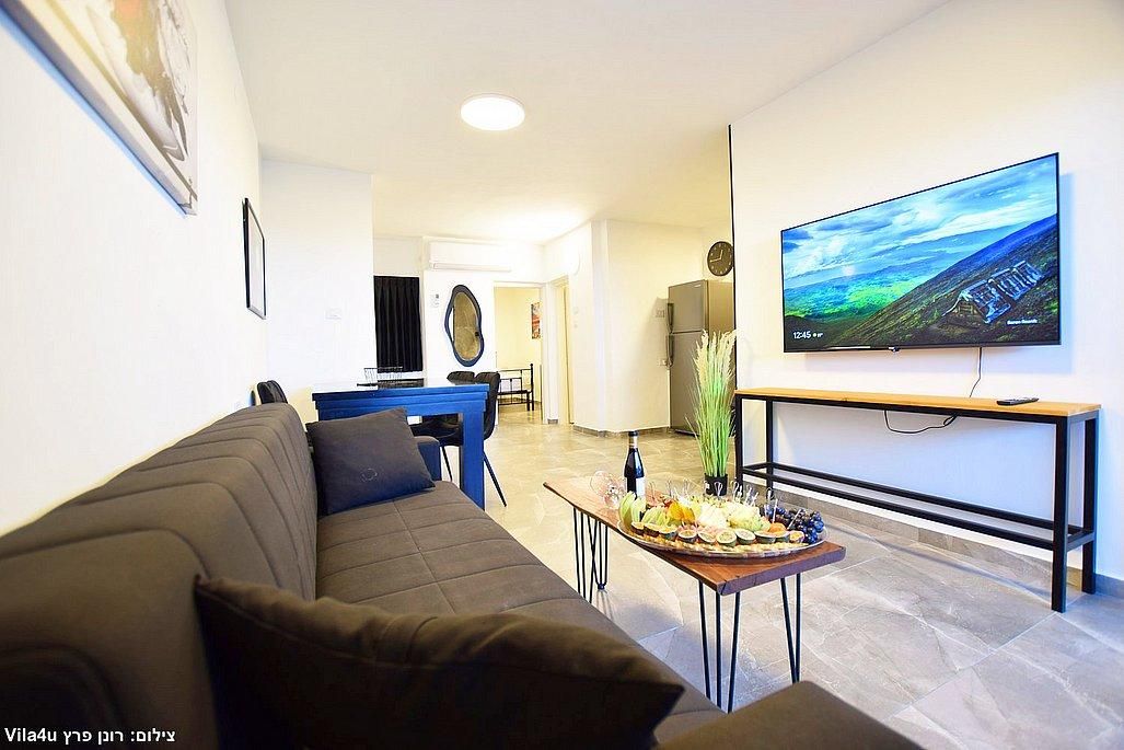 ספה נפתחת, טלוויזיה 50 אינץ', פינת אוכל גדולה.
