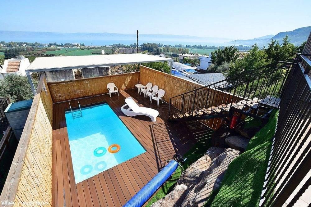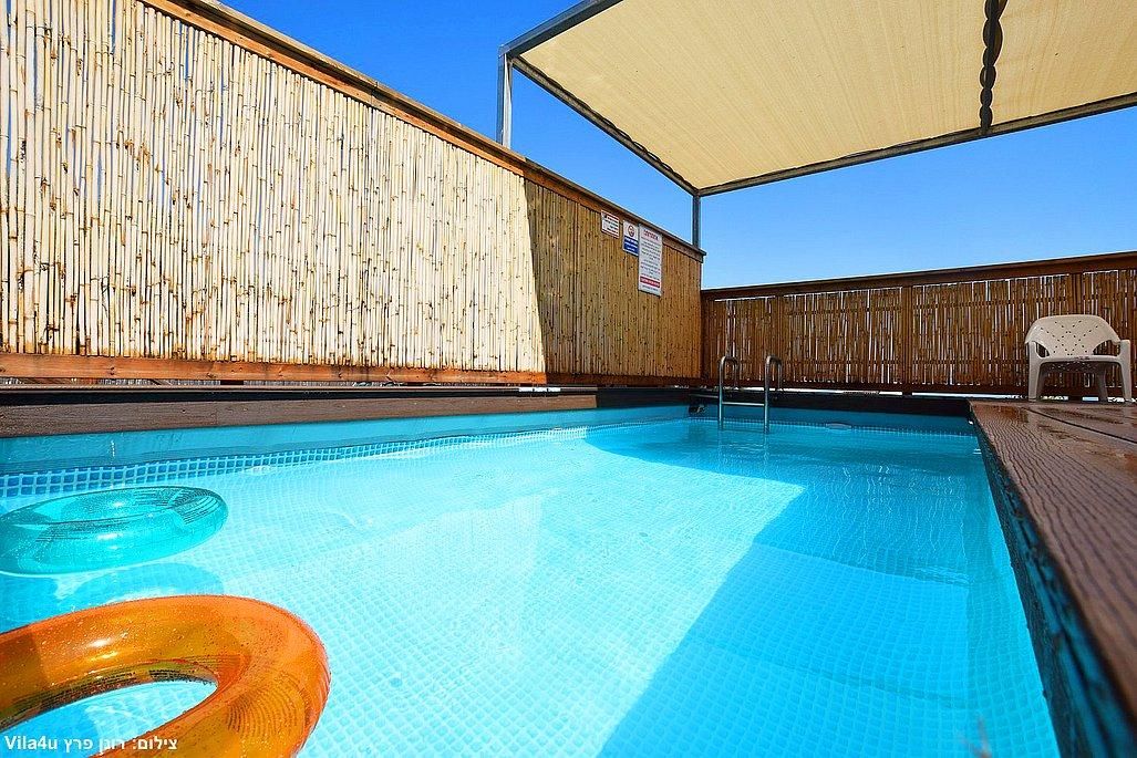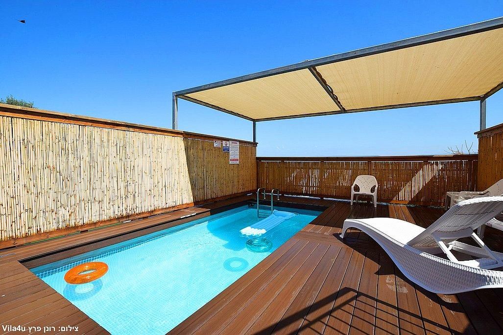 בריכת שחייה מחוממת בגודל 5.50x2.74 מ', עומק 1.30 מ'.